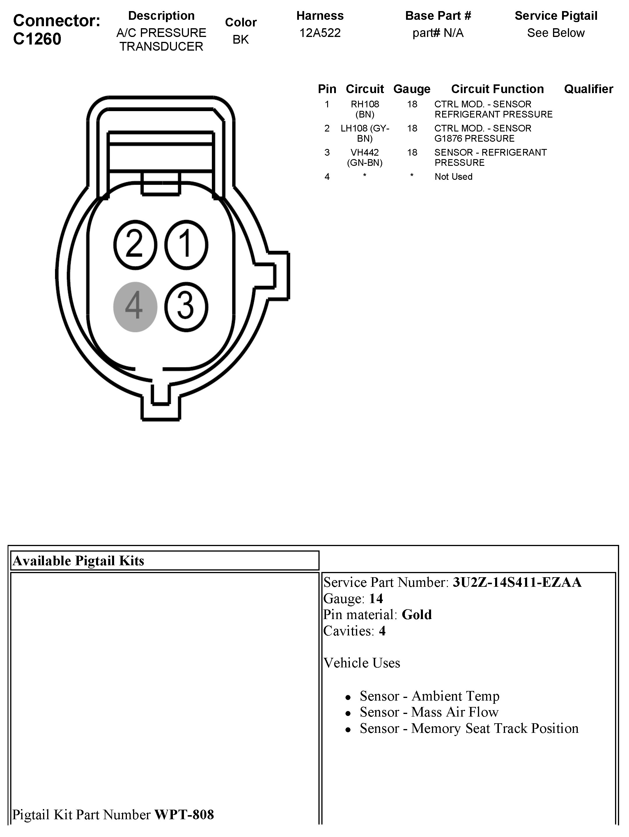 Refrigerant Pressure Sensor / Switch: Diagrams