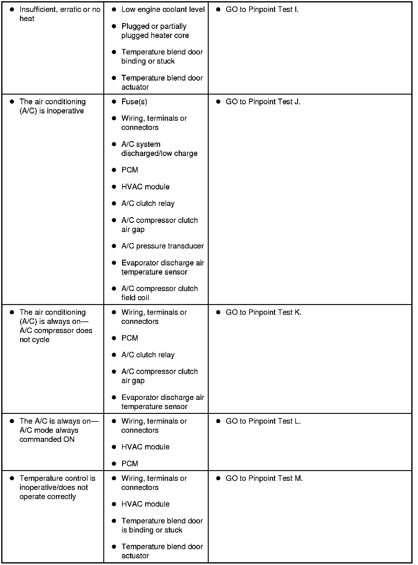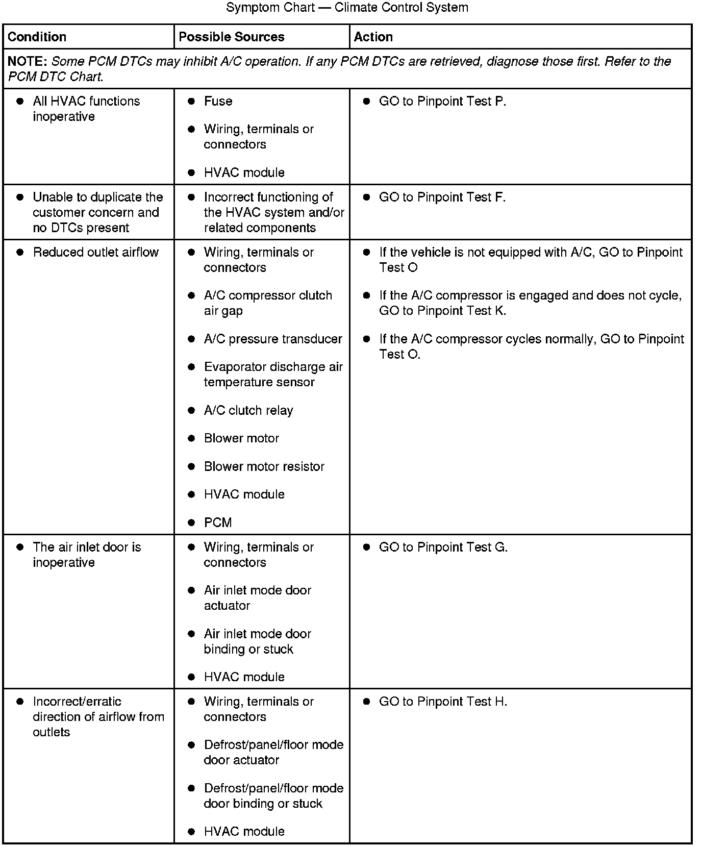 Symptom Chart - Climate Control System