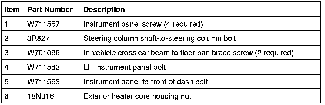 Instrument Panel Mounting Fasteners