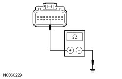 - Measure the resistance between the OCSM (Occupant Classification System Module) C3159-14, circuit GD145 (BK/BU), harness side and ground.