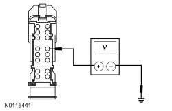 - Measure the voltage between the BCM (Body Control Module) C2280B-4, circuit CBP21 (BU/GY) harness side and ground.