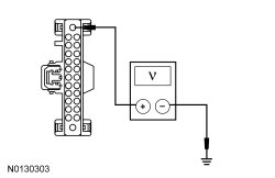 - Measure the voltage between the ACM (Audio Control Module) C240A-1, circuit SBP10 (YE/RD), harness side and ground.