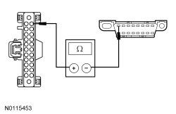 - Measure the resistance between the ACM (Audio Control Module) C240A-14, circuit VDB06 (GY/OG), harness side and the DLC (Data Link Connector) C251-1, circuit VDB06 (GY/OG), harness side.