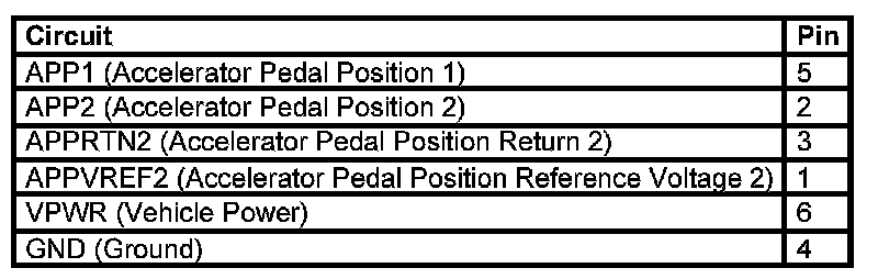 Accelerator Pedal Position (APP) Sensor Connector