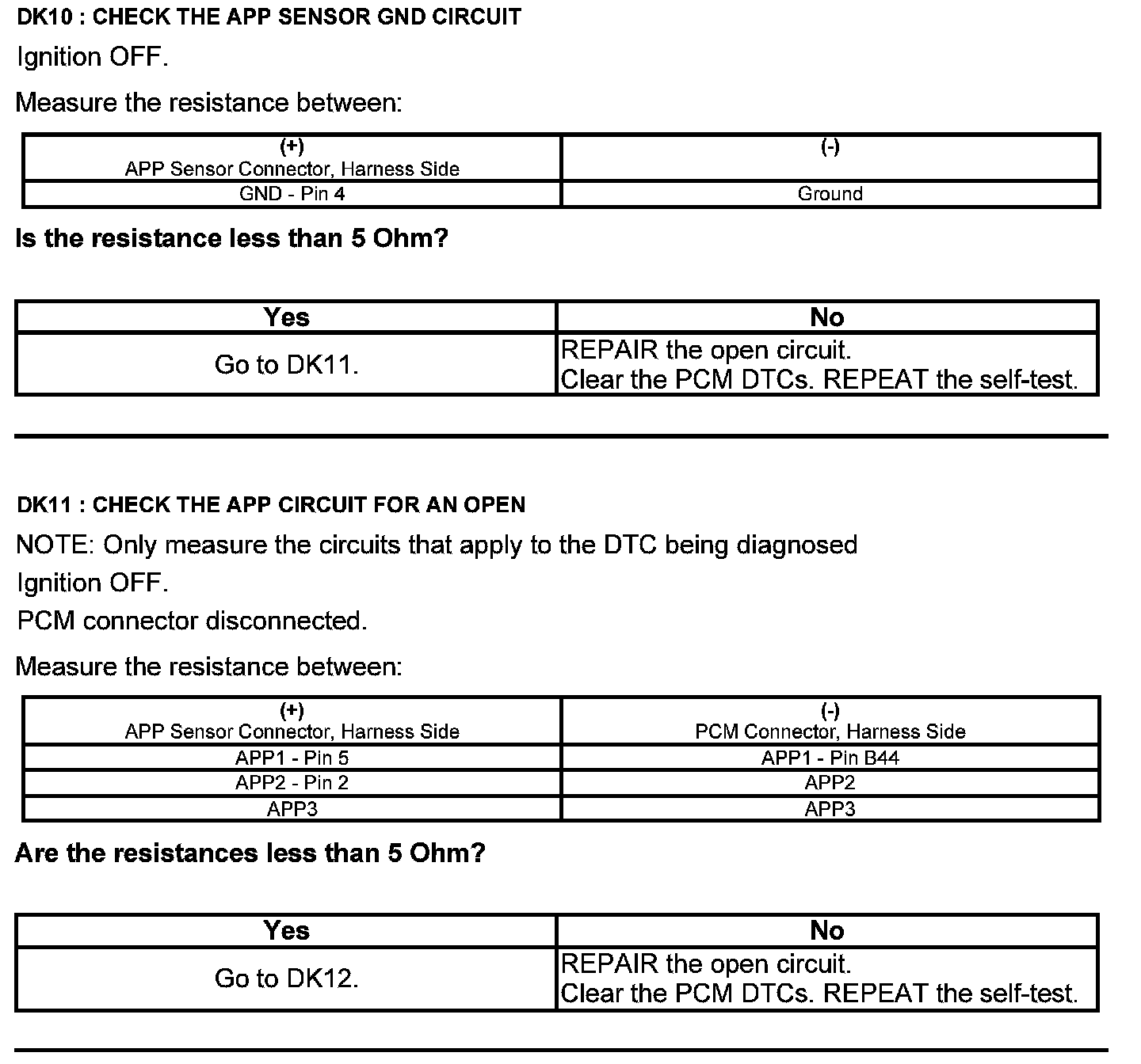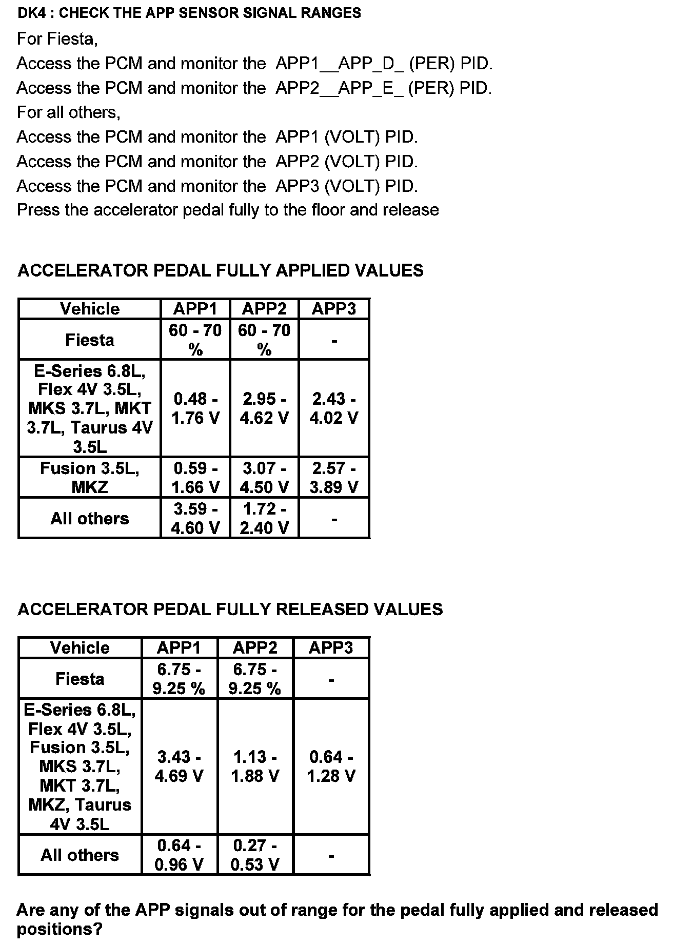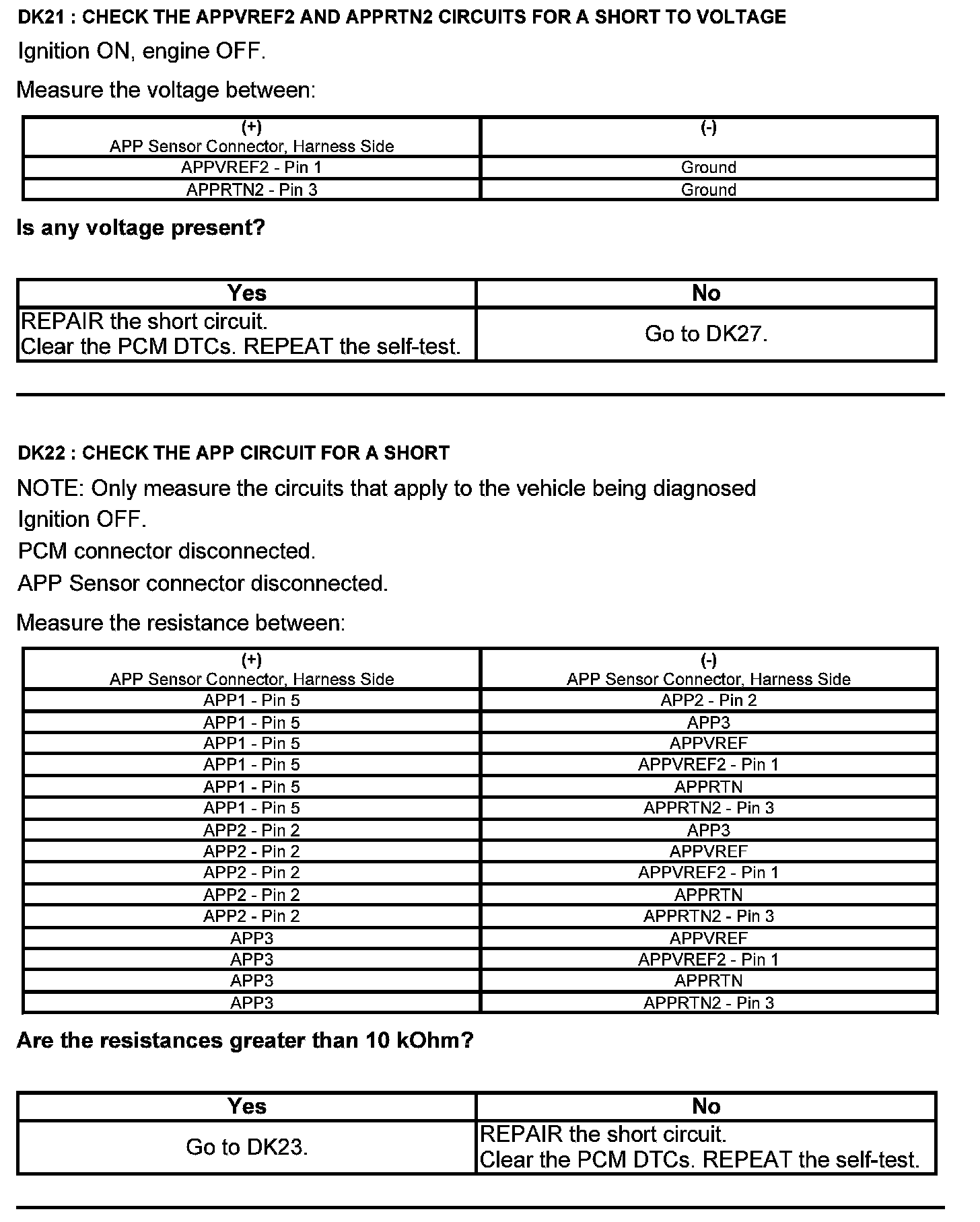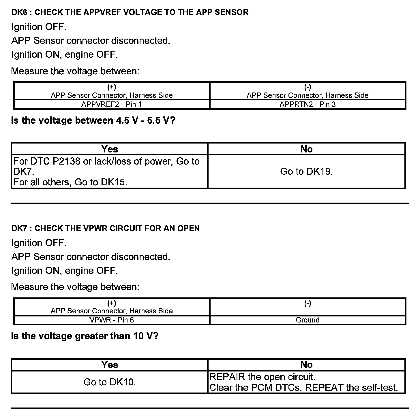 Test DK: Accelerator Pedal Position (APP) Sensor