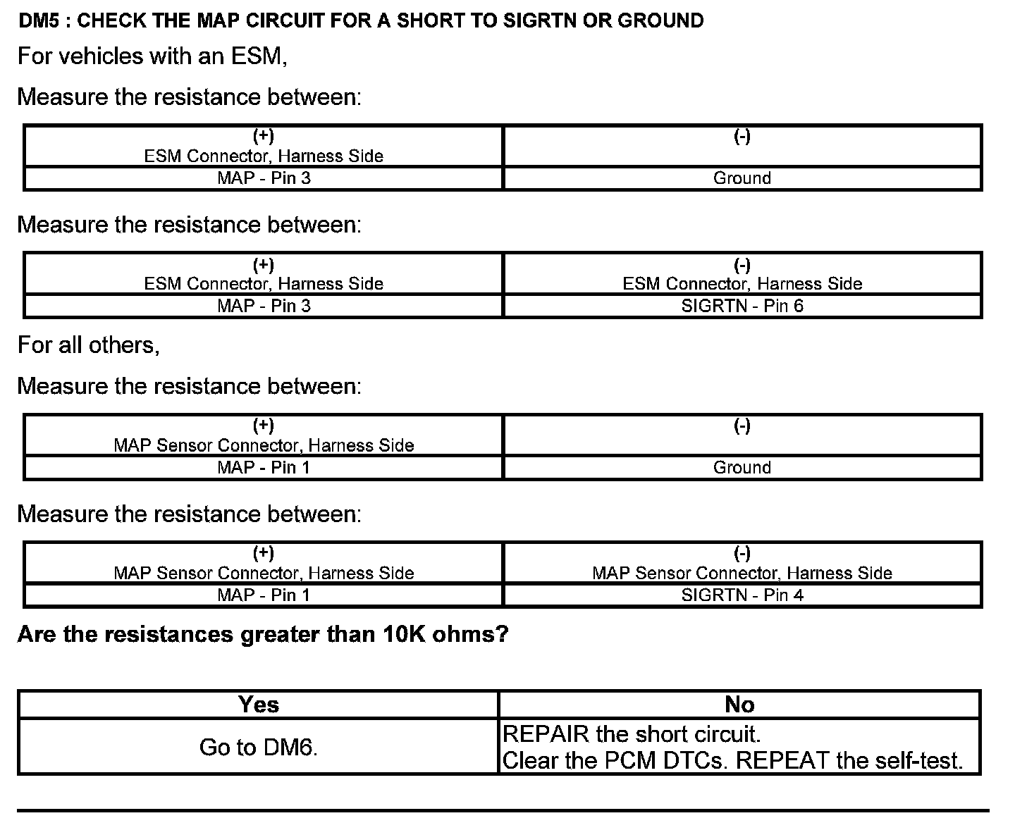 Test DM: Manifold Absolute Pressure (MAP) Sensor