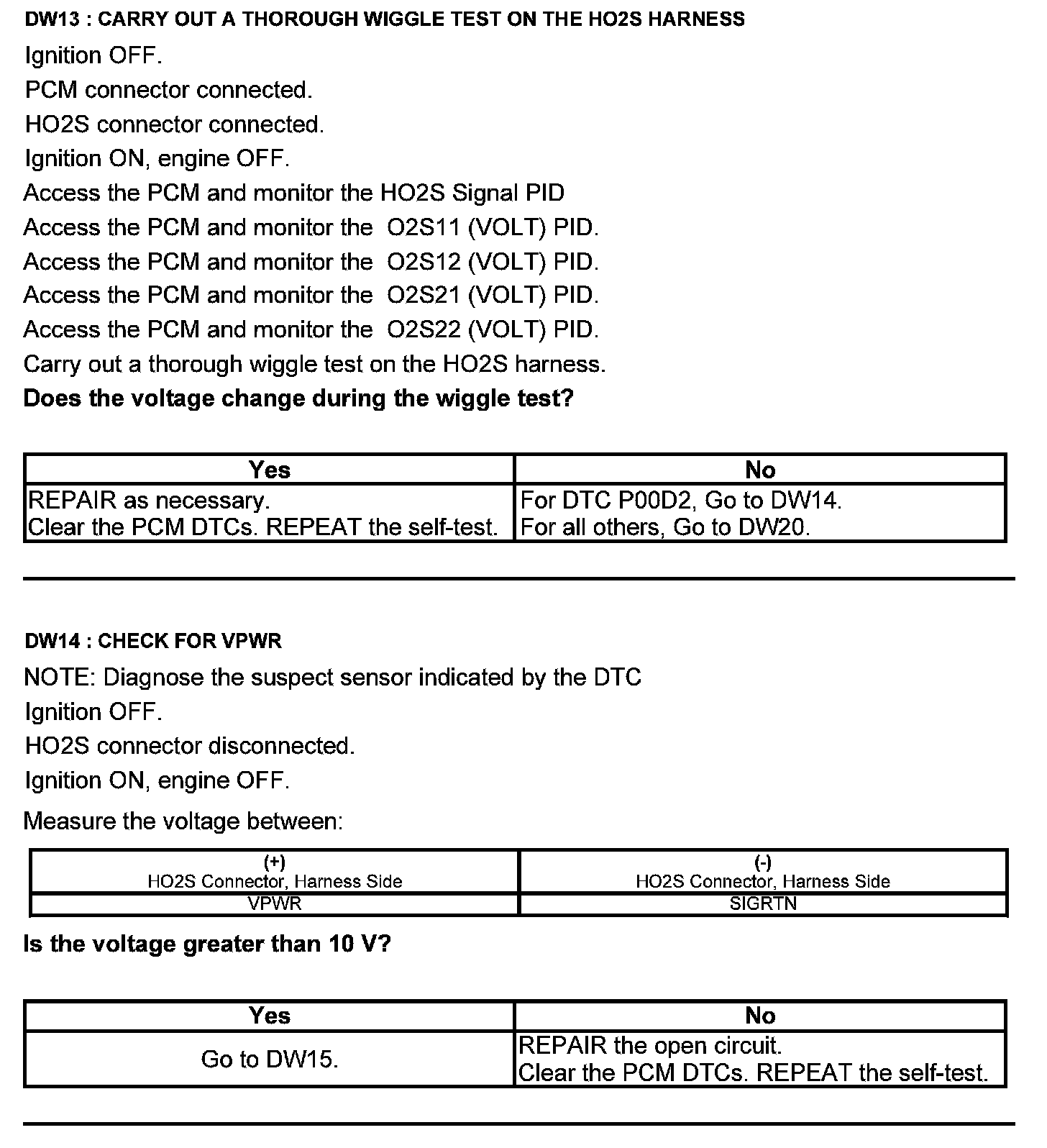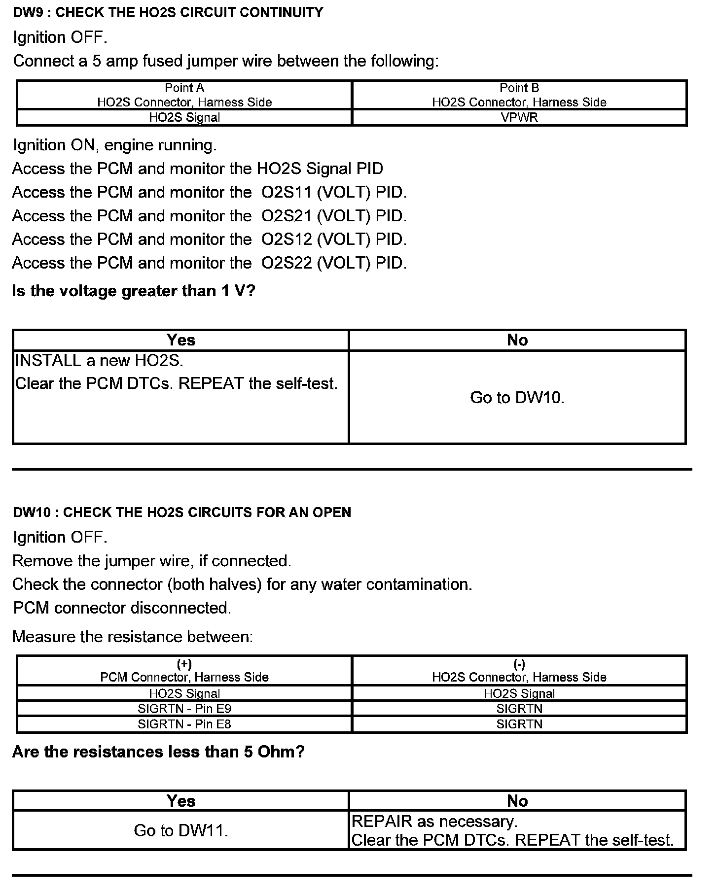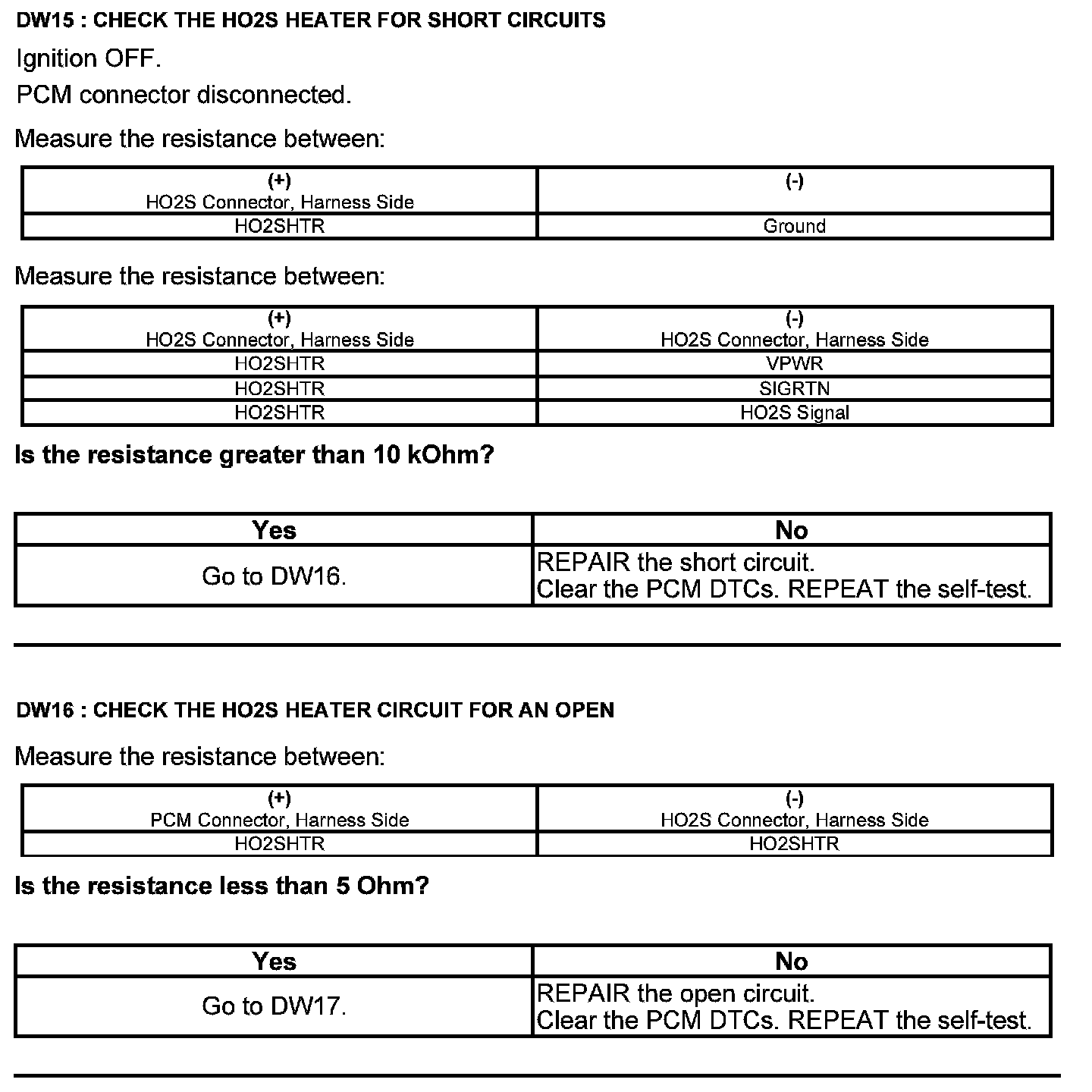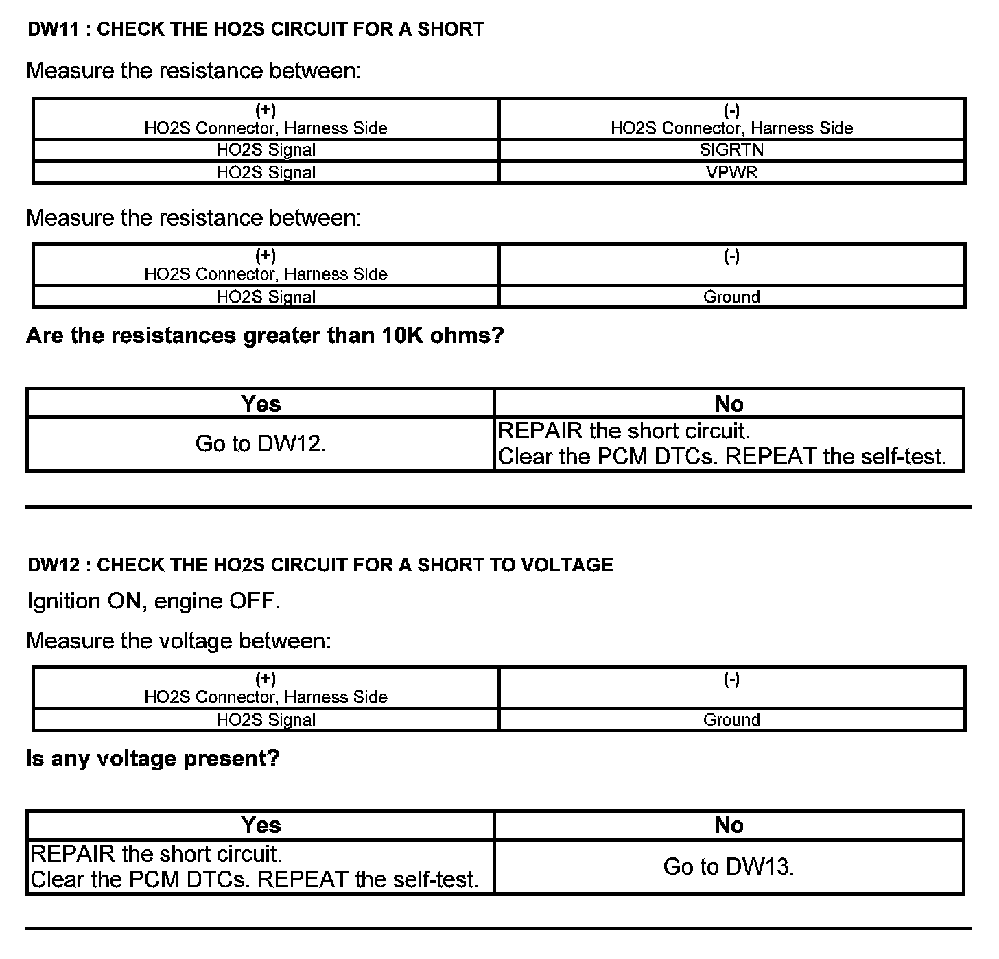Test DW: Heated Oxygen Sensor (HO2S)