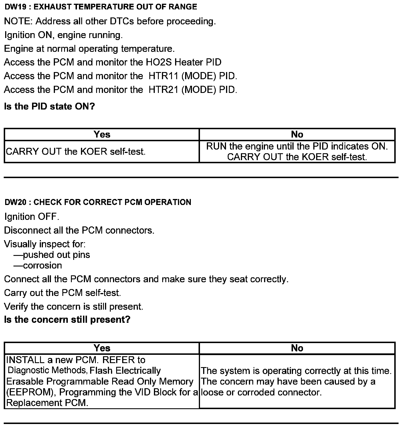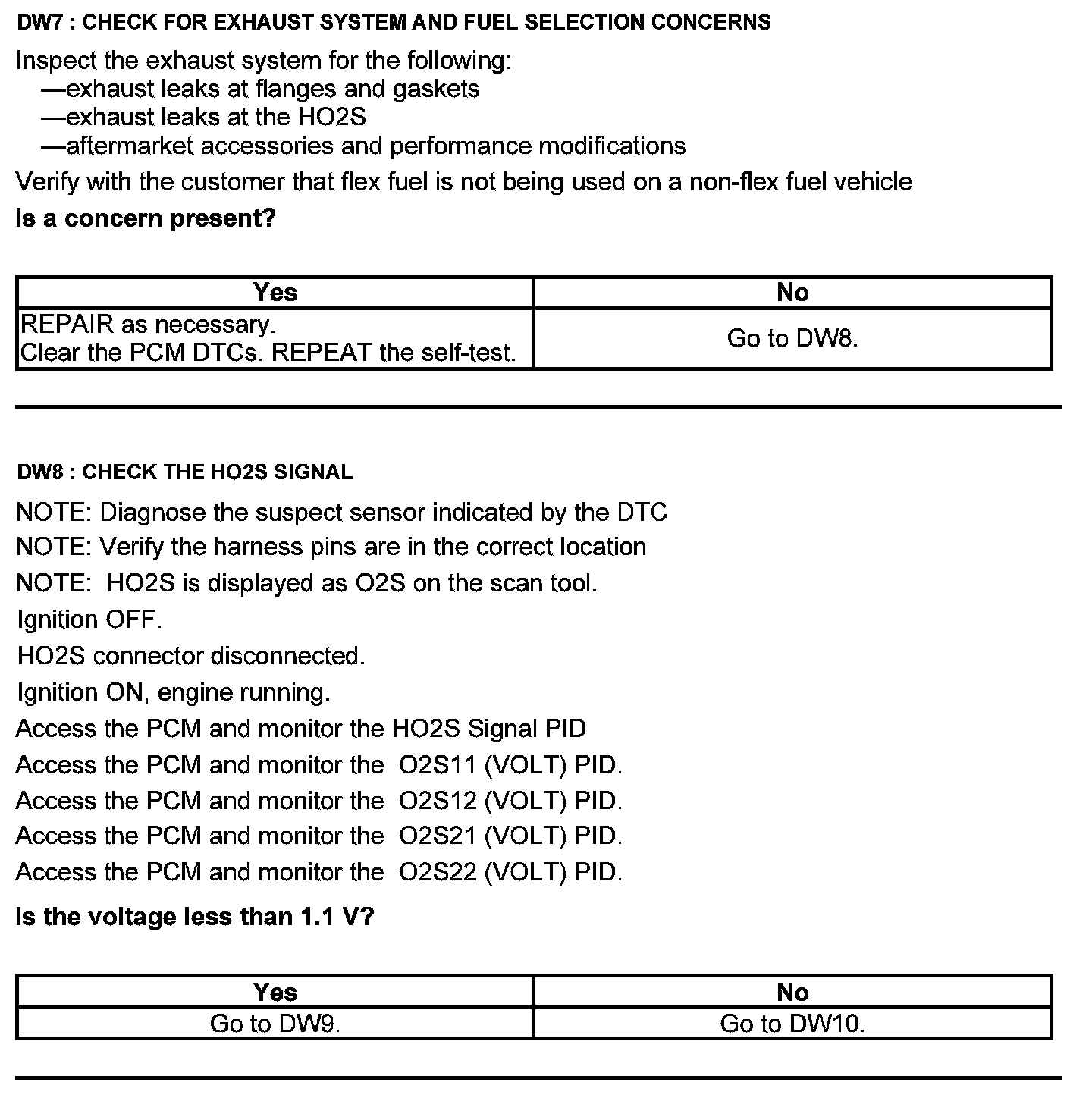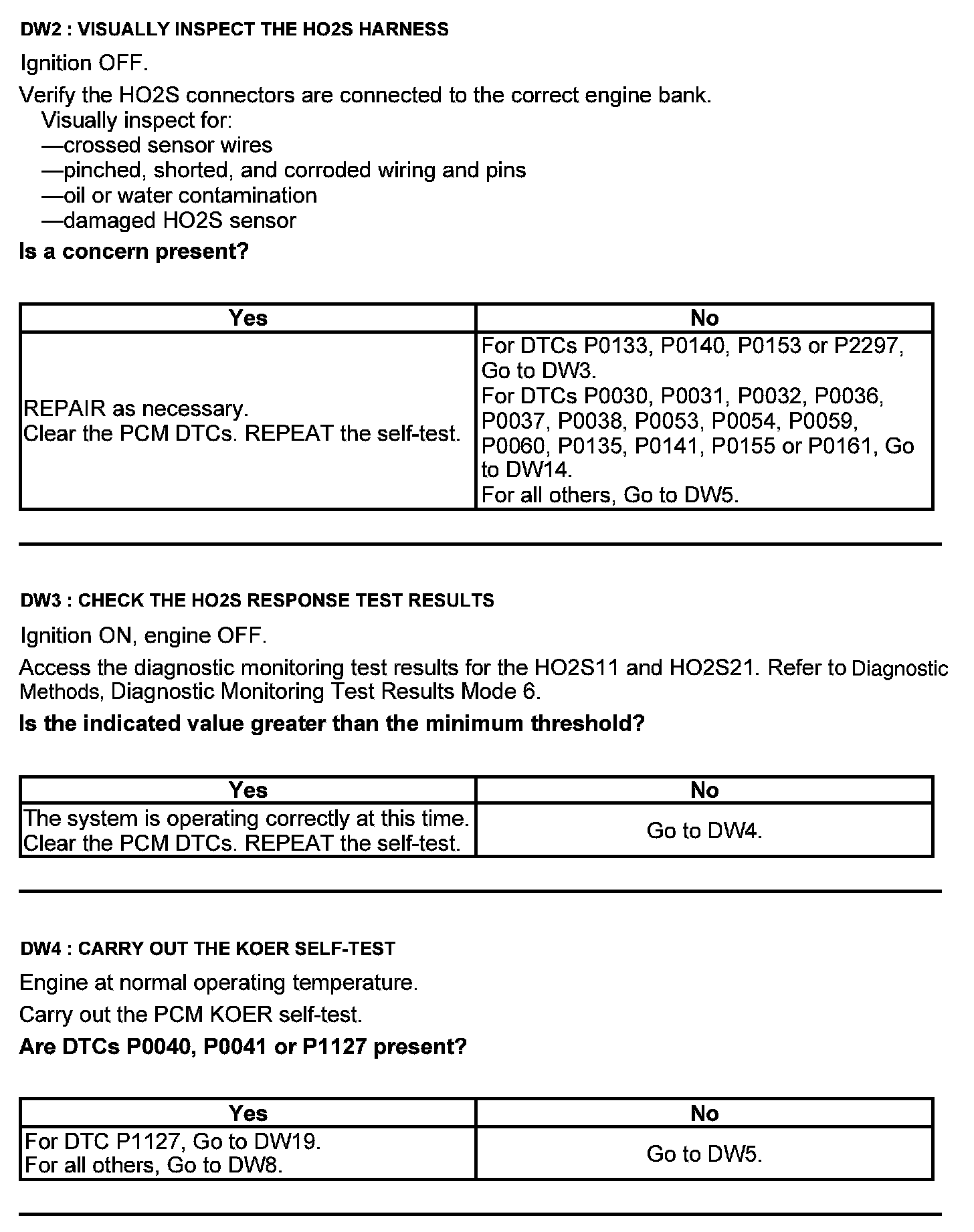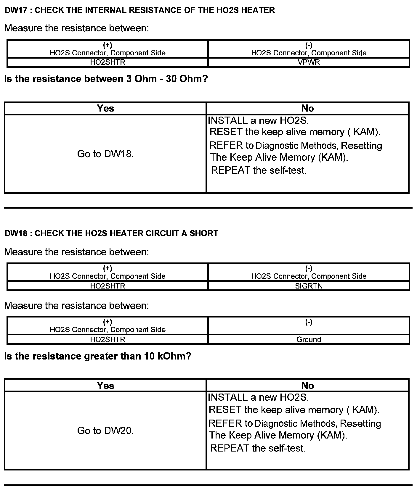 Test DW: Heated Oxygen Sensor (HO2S)