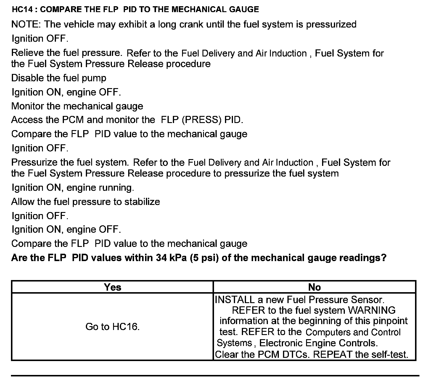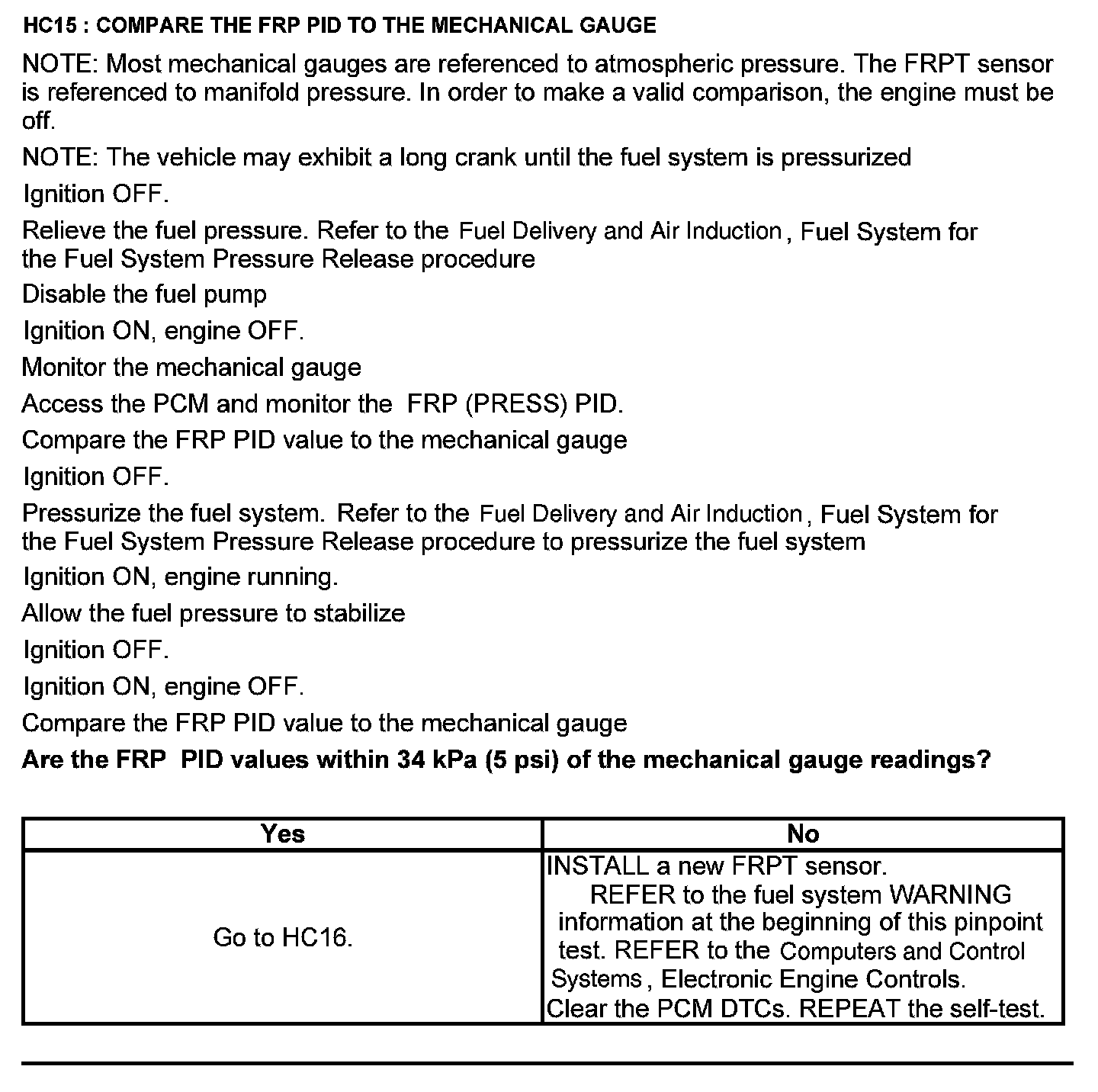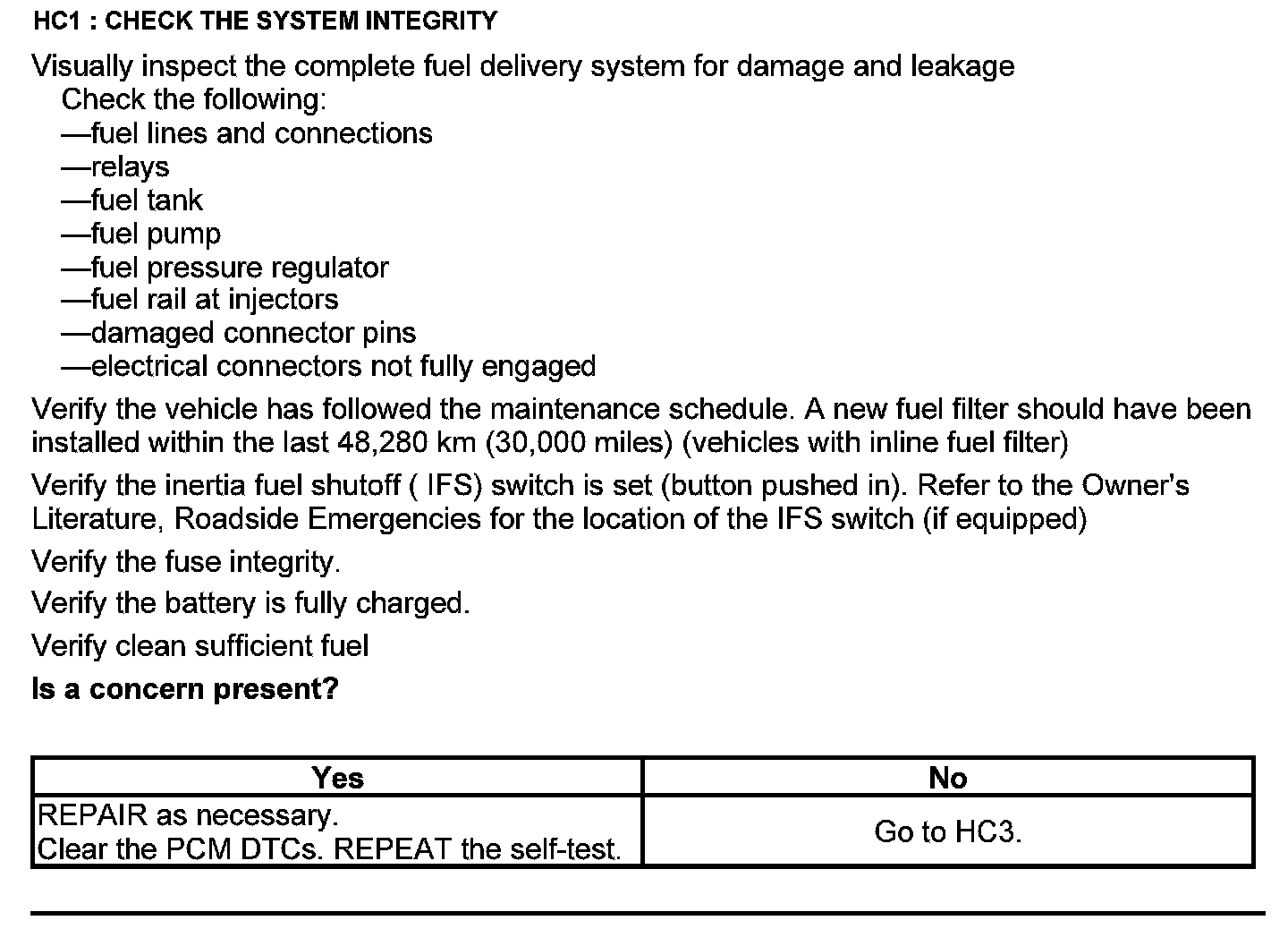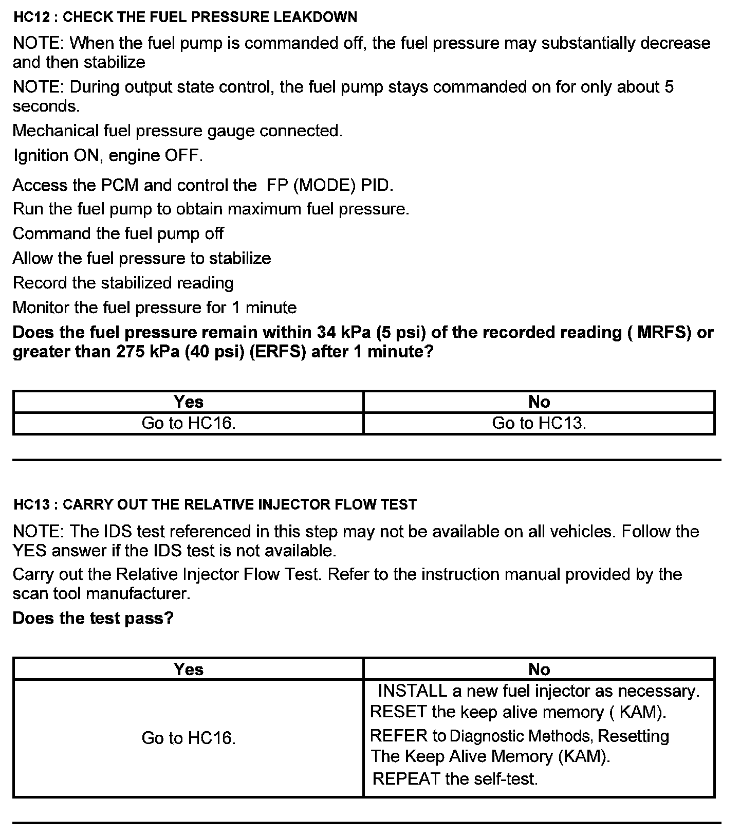 Test HC: Fuel Delivery System