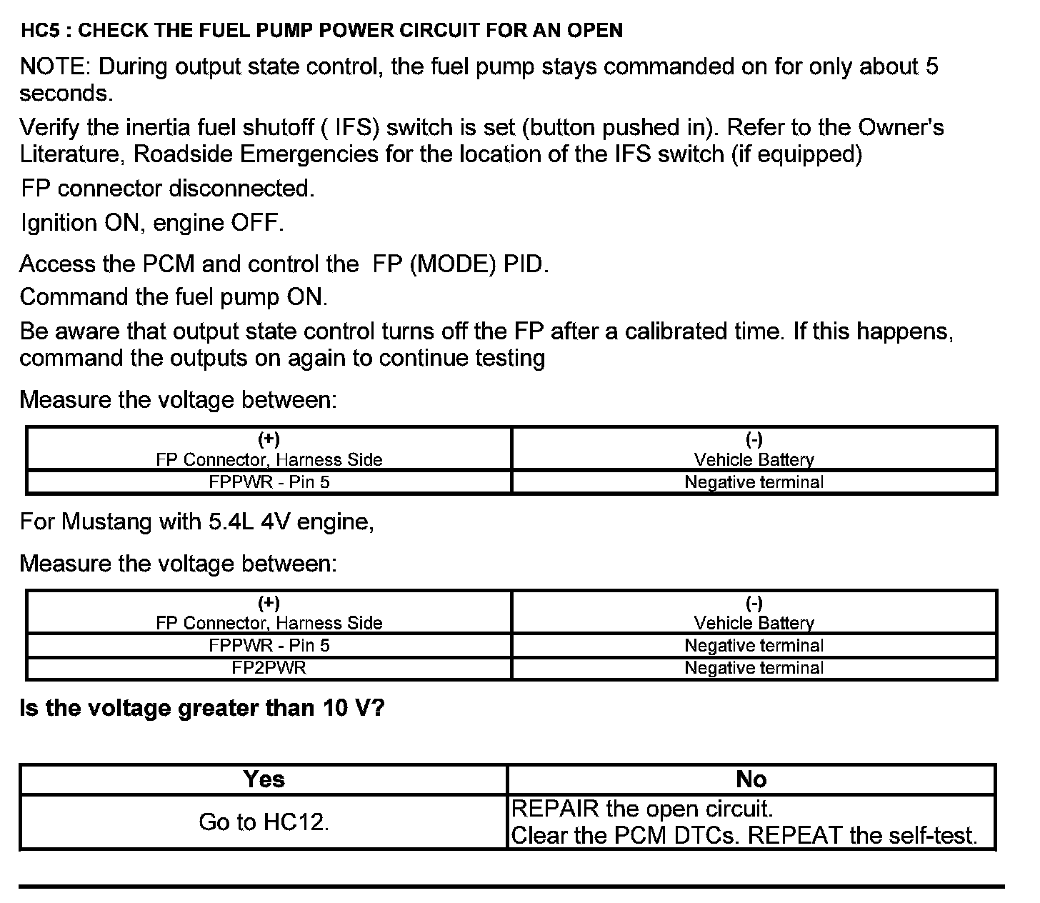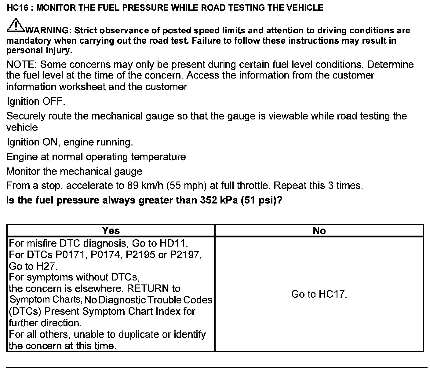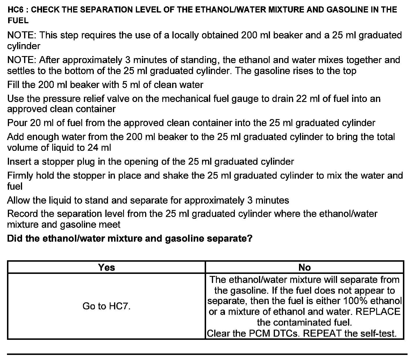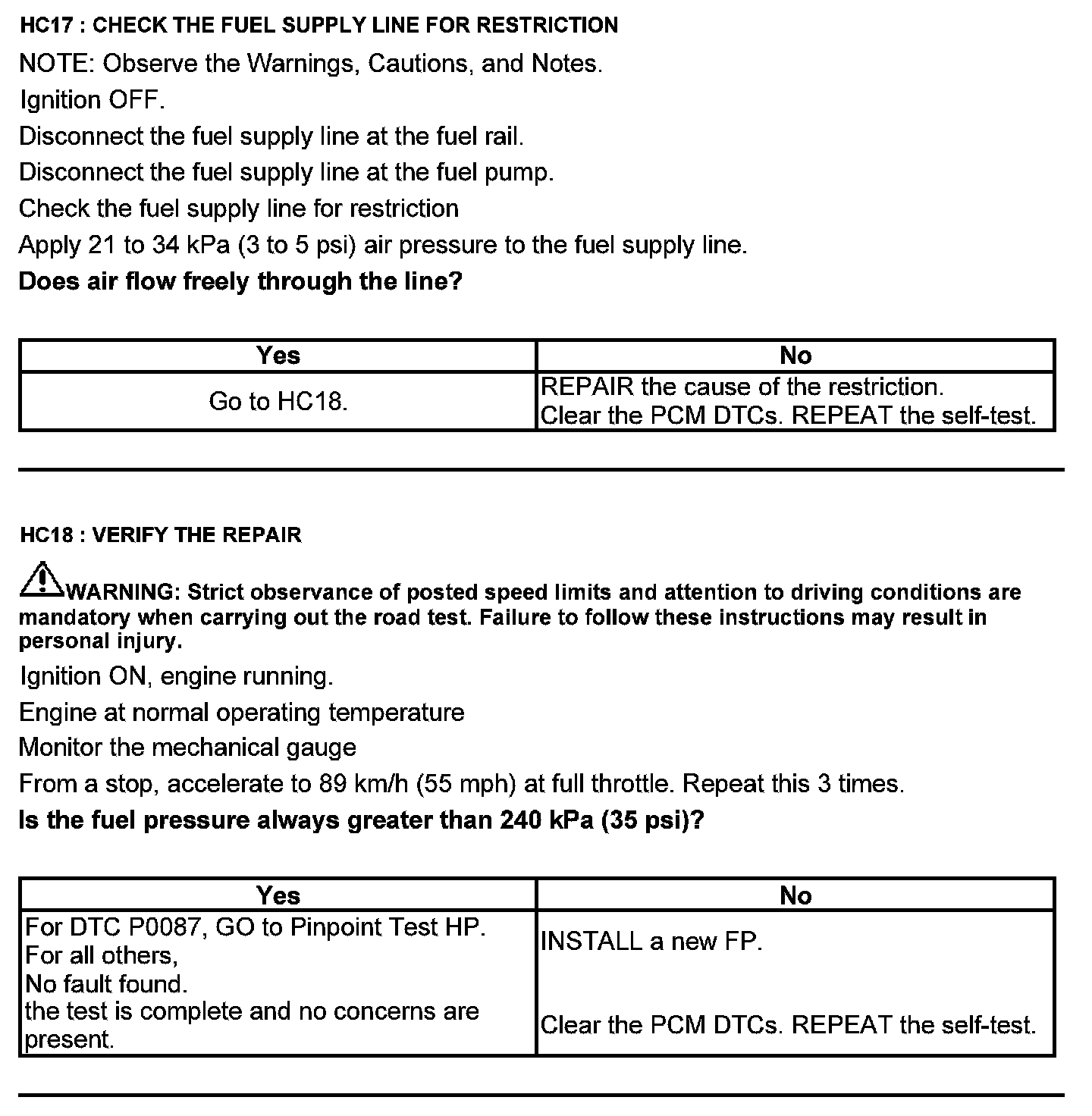 Test HC: Fuel Delivery System