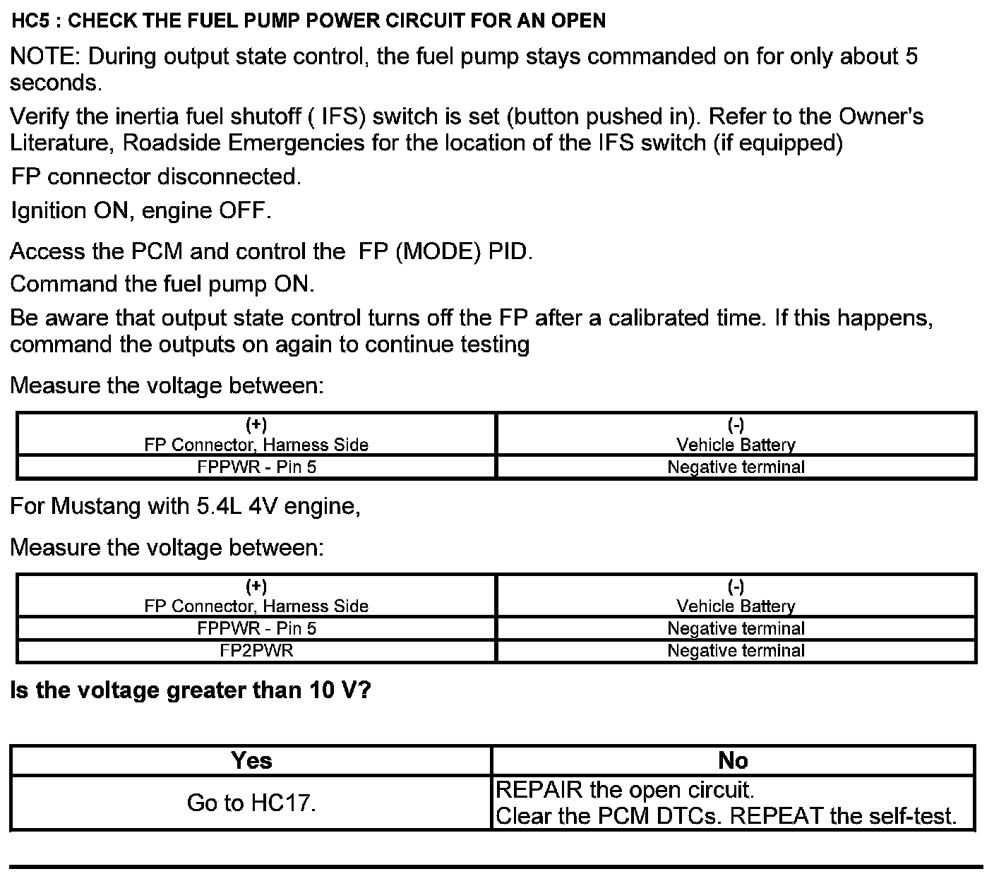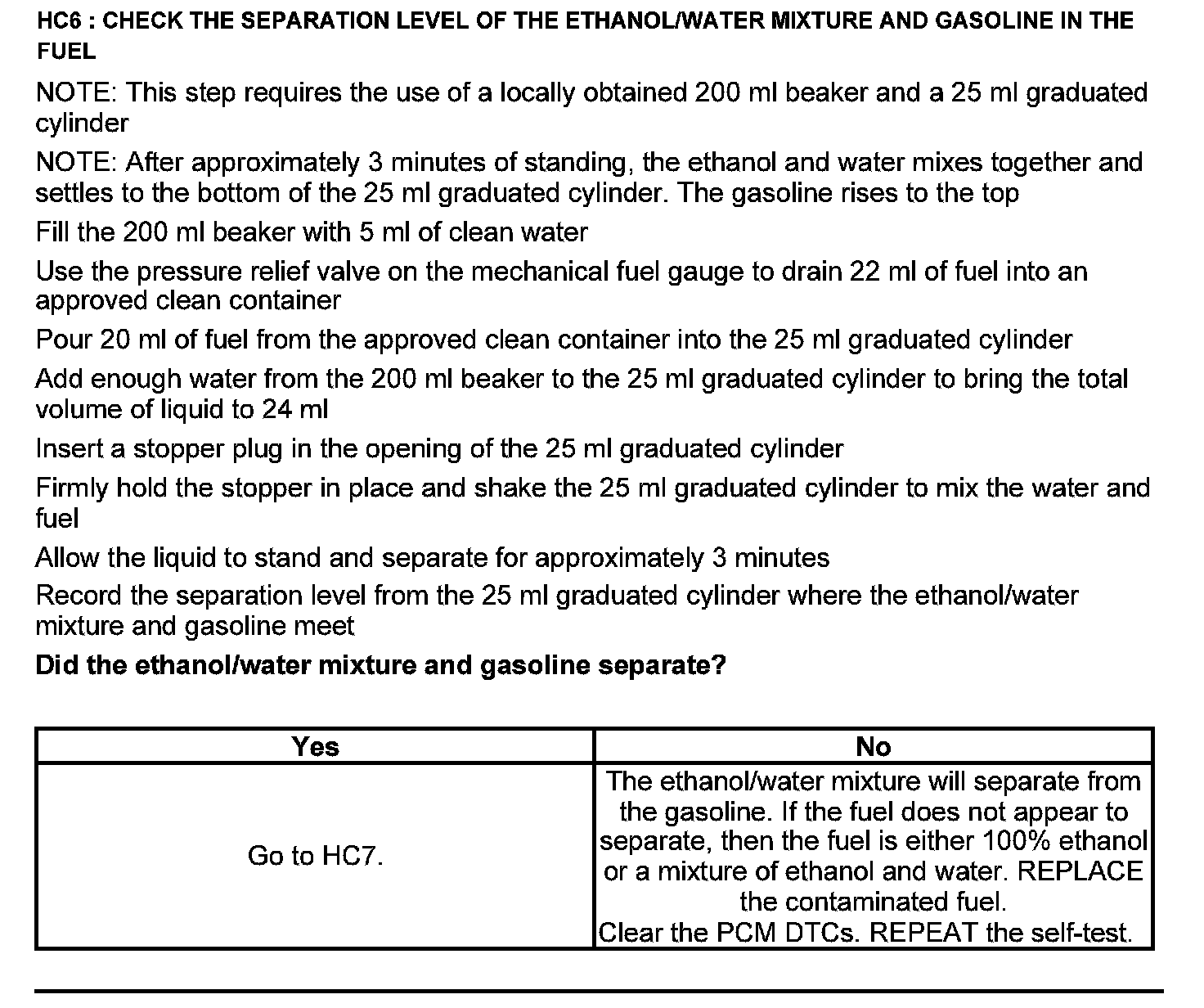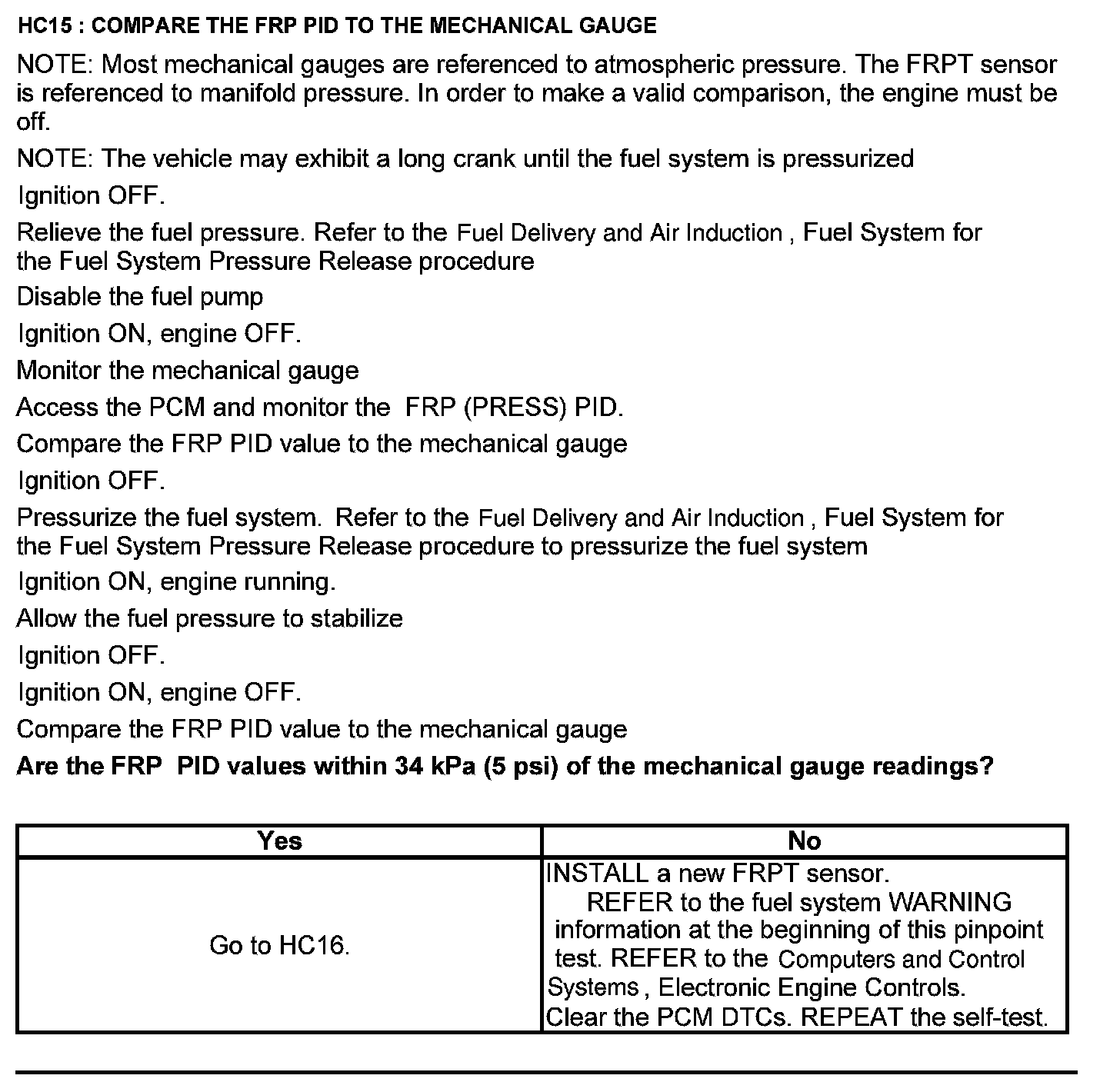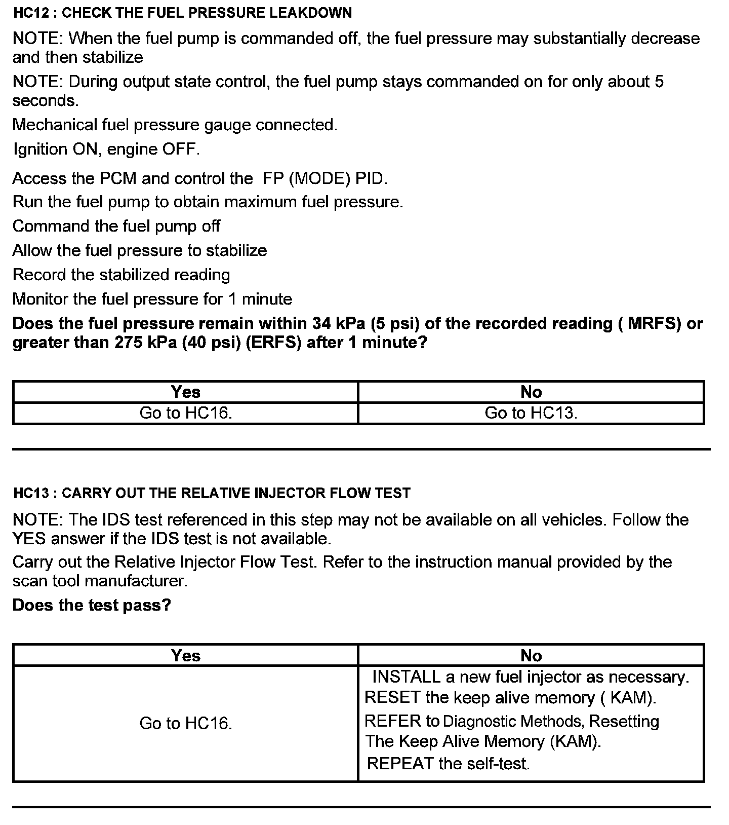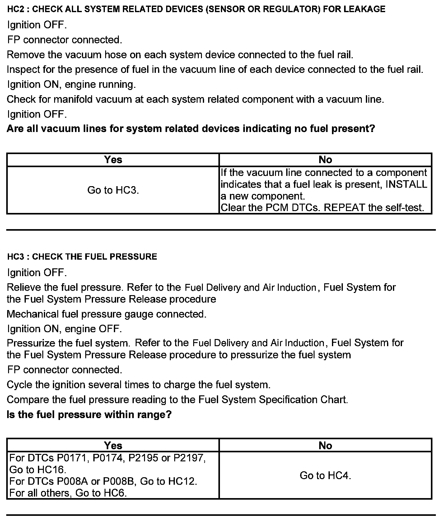 Test HC: Fuel Delivery System