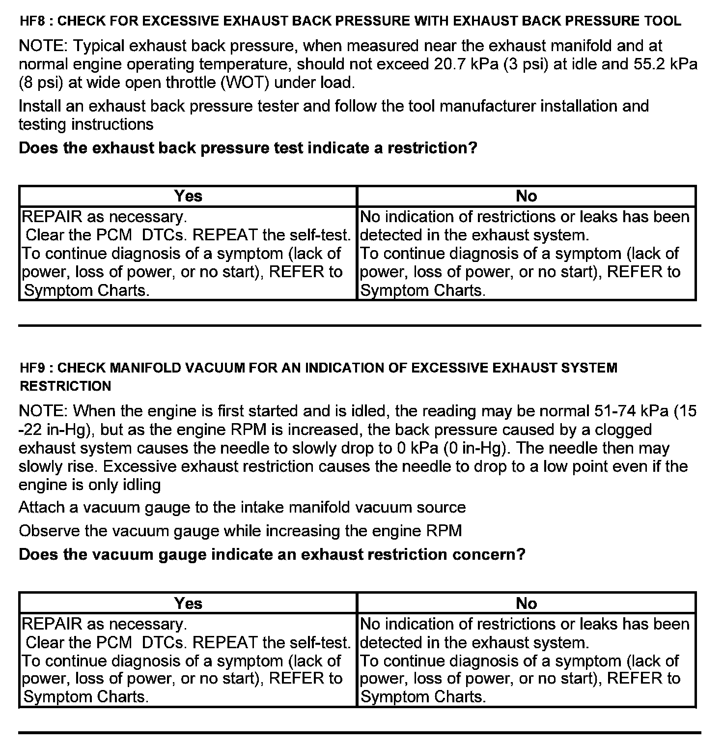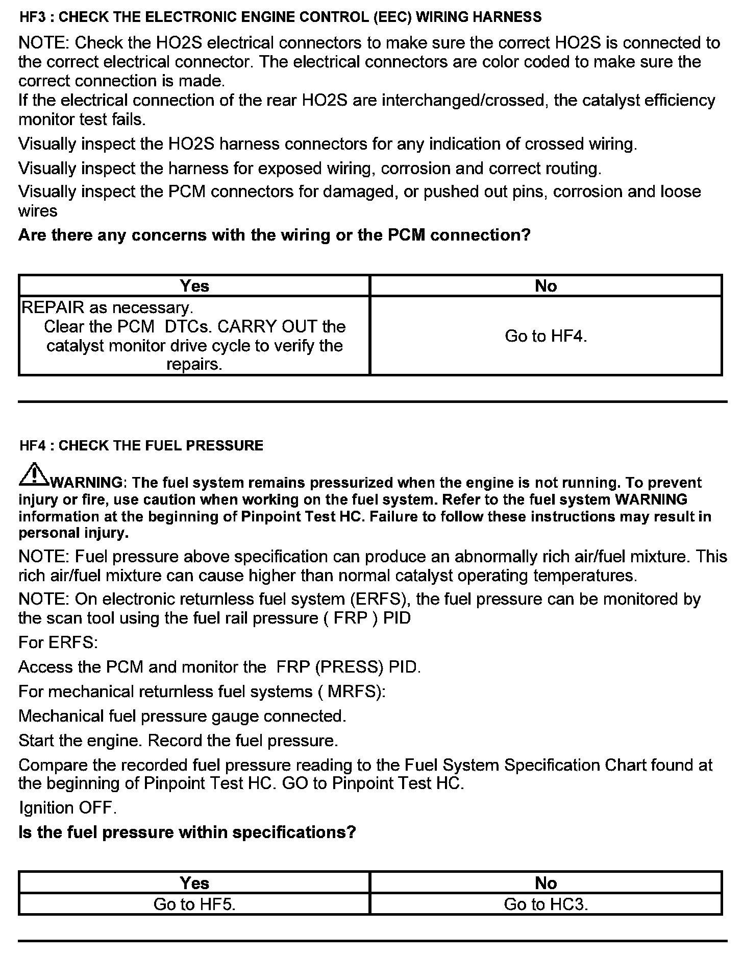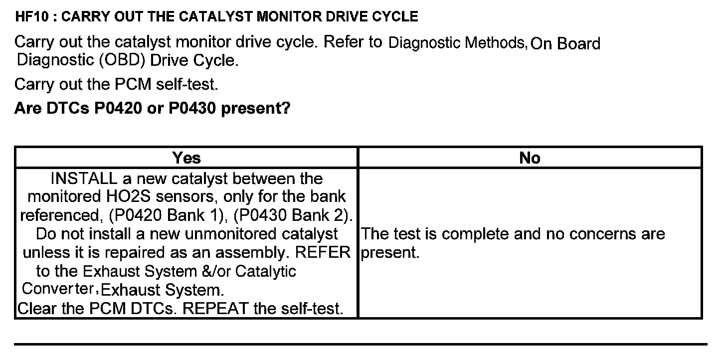 Test HF: Catalyst Efficiency Monitor and Exhaust Systems