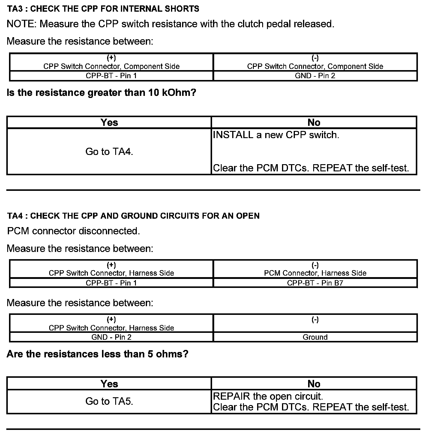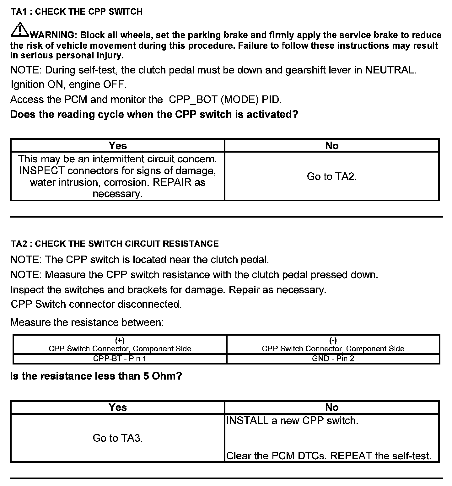 Test TA: Clutch Pedal Position (CPP#2) Switch