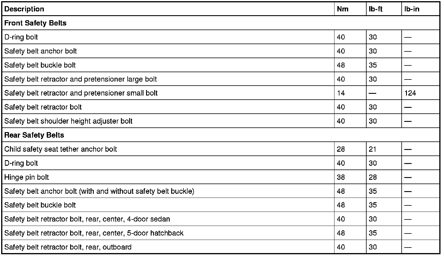 Torque Specifications