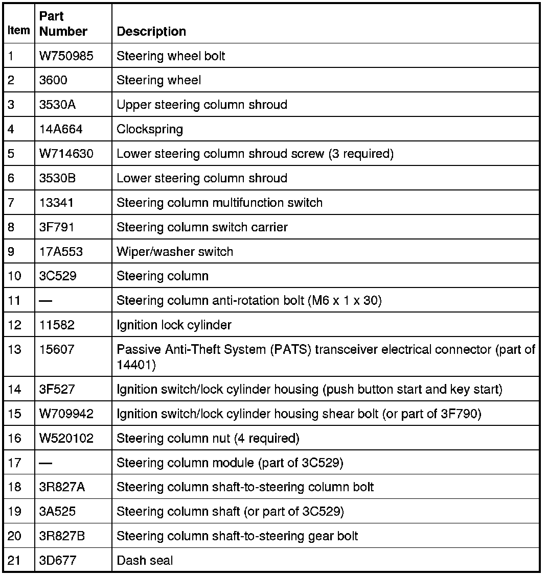 Steering Column - Exploded View