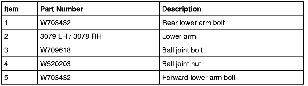 3. Remove and discard the forward and rear lower arm bolts and remove the lower arm.