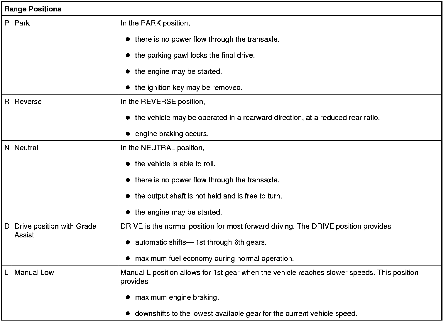 - Provides additional engine braking through the automatic transaxle shift strategy which reacts to vehicle inputs (vehicle acceleration, accelerator pedal, brake pedal and vehicle speed).