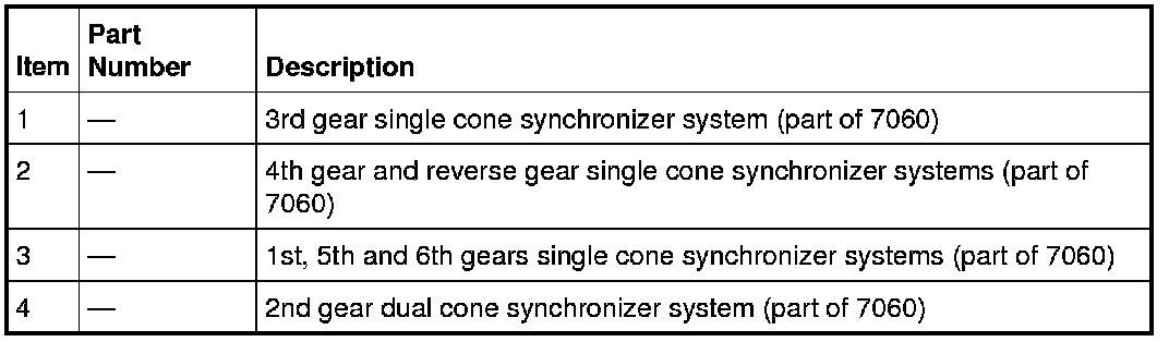 The synchronizer systems are comprised of single and dual cone synchronizer systems. The synchronizers are designed to act as the torque carrying interfaces between each speed gear and corresponding output shaft. The synchronizer design and function are similar to manual transaxle operations.
