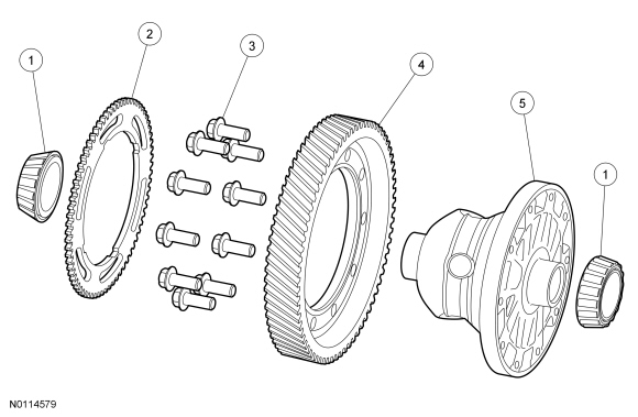 3. Remove and discard the differential ring gear bolts. Lightly tap the ring gear to separate it from the differential case.