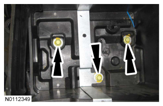 42. Install the battery tray and the 3 battery tray bolts.