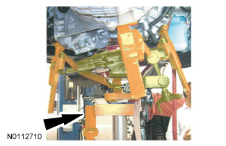 16. Using the special tools, lower the transaxle.