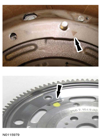 8. If using a new clutch assembly, make sure the clutch-to-flexplate alignment marks are aligned.