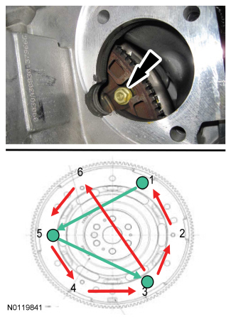 Install the 6 new flexplate-to-clutch nuts. Tighten the nuts in a star pattern in 2 stages.