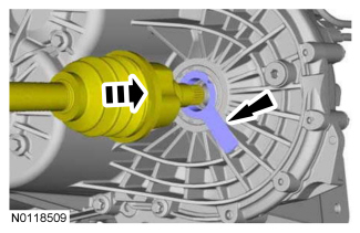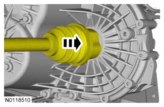 22. Using the LH halfshaft seal protector provided with the new LH halfshaft seal, install the LH halfshaft partially into the transaxle.