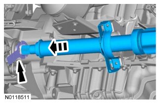 27. Using the RH halfshaft seal protector provided with the new RH halfshaft seal, install the RH intermediate shaft assembly partially into the transaxle.