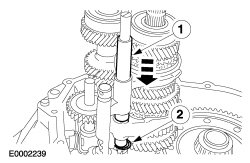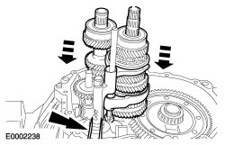 7. Install the input shaft, output shaft and selector fork assemblies into the transaxle case.