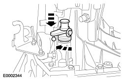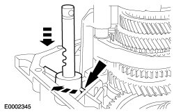- Turn the selector shaft clockwise until the reverse and 5th gear passage is reached, then press downwards.