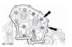 16. Install the new 5th gear housing gasket, 5th gear housing and the 9 new 5th gear housing bolts.