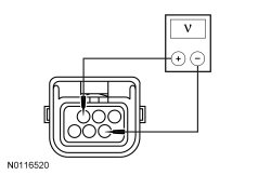 - Measure the voltage between LH front power window motor C524-3, circuit RCA17 (WH/BN), harness side and LH front power window motor C524-4, circuit RPW37 (VT/GN), harness side.