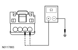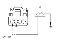 - Measure the resistance between master window control switch C504B-1, circuit RCA17 (WH/BN), harness side and ground; and between master window control switch C504B-2, circuit RPW37 (VT/GN), harness side and ground.