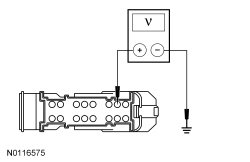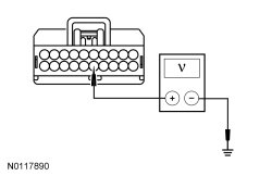 - Measure the voltage between HVAC module C228A-15, circuit CRD04 (BN/GN), harness side and ground.