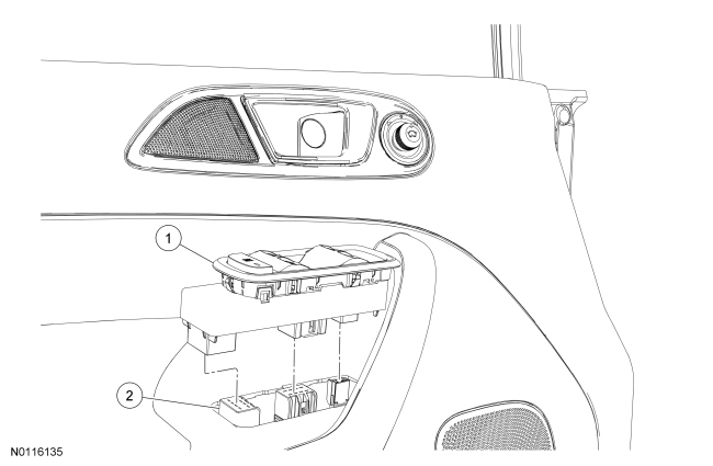 - The master window control switch and the LH window motor must be initialized whenever battery voltage has been removed from the driver window control switch for greater than 3 minutes (for example, the battery or the master window switch is disconnected) or if a new driver window control switch is installed. For additional information, refer to Window Motor Initialization Programming and Relearning.