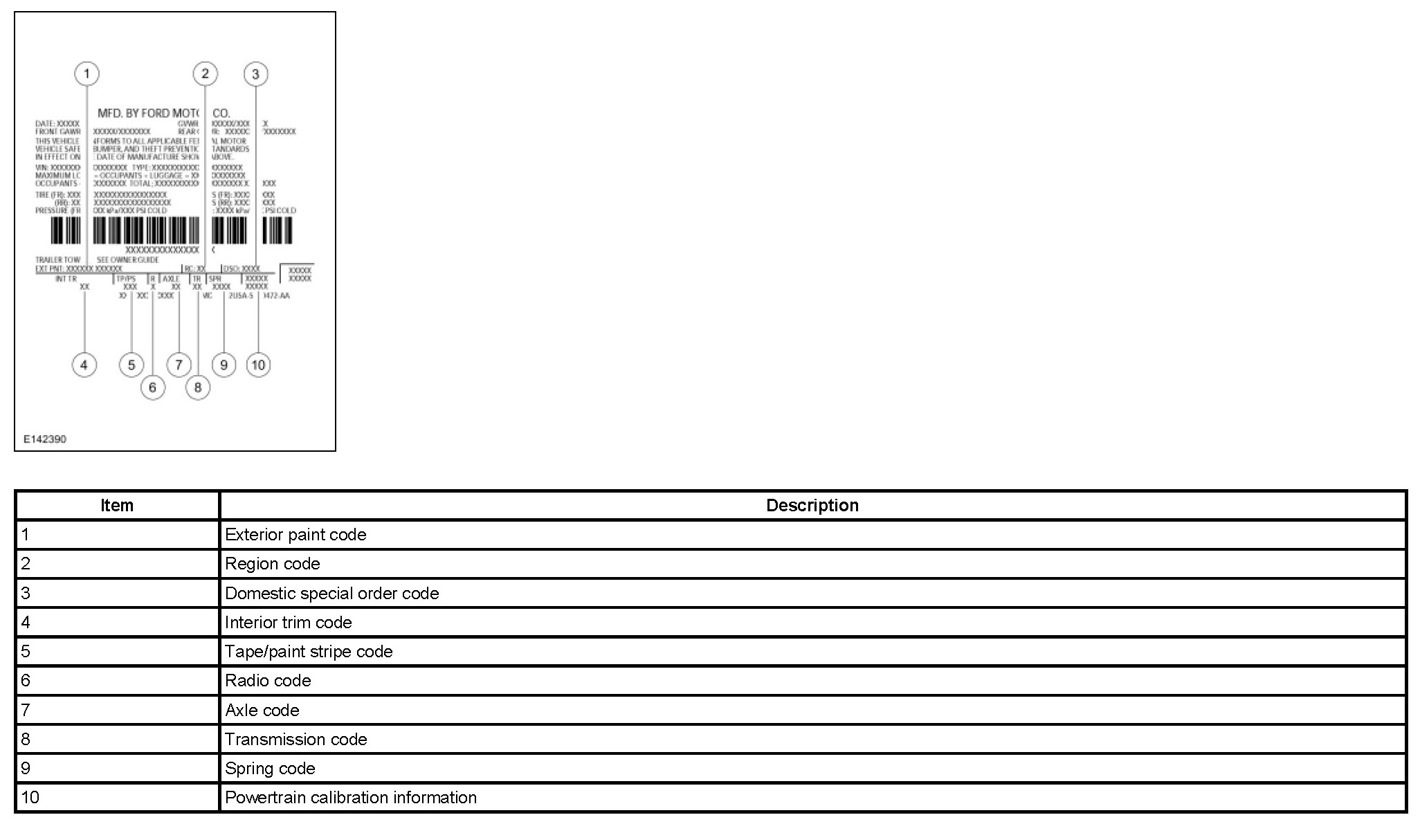 Powertrain calibration information is printed in the lower right corner of the VC label. Only the base calibration information is printed. Revision levels will not appear, however, they can be obtained through a scan tool using the most current software revision.