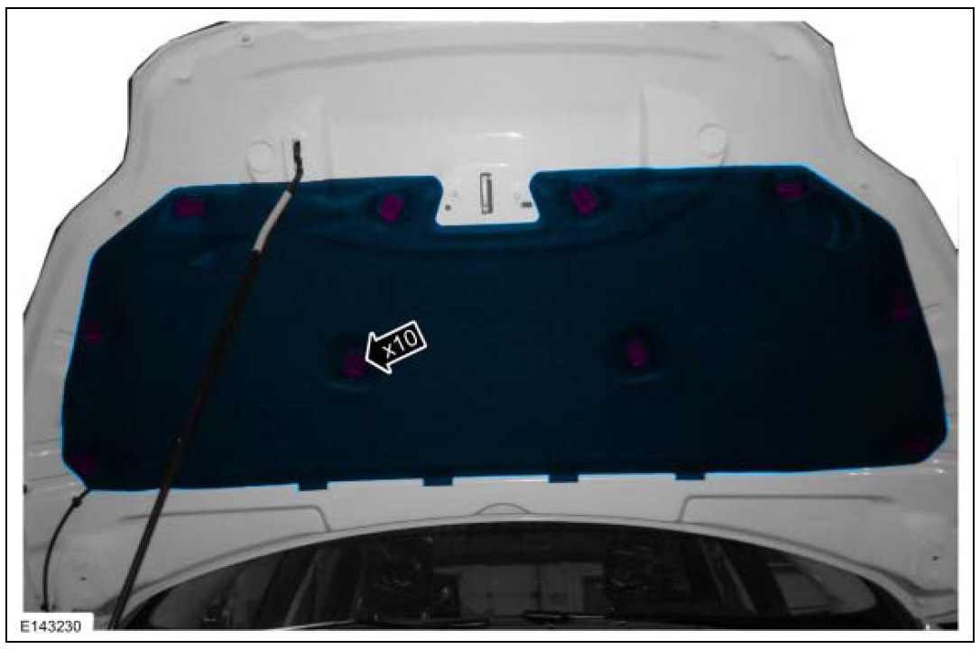 2. Remove the hood insulator pushpin retainers and the hood insulator.