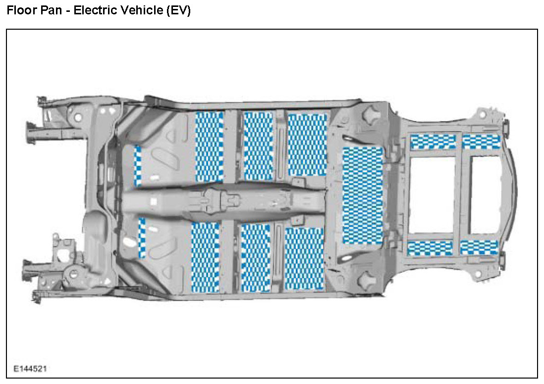 NOTE: The following illustration serves as a reference to indicate mastic patch (butyl) locations. Additional insulators and sound deadeners are used beyond those indicated in the illustration.