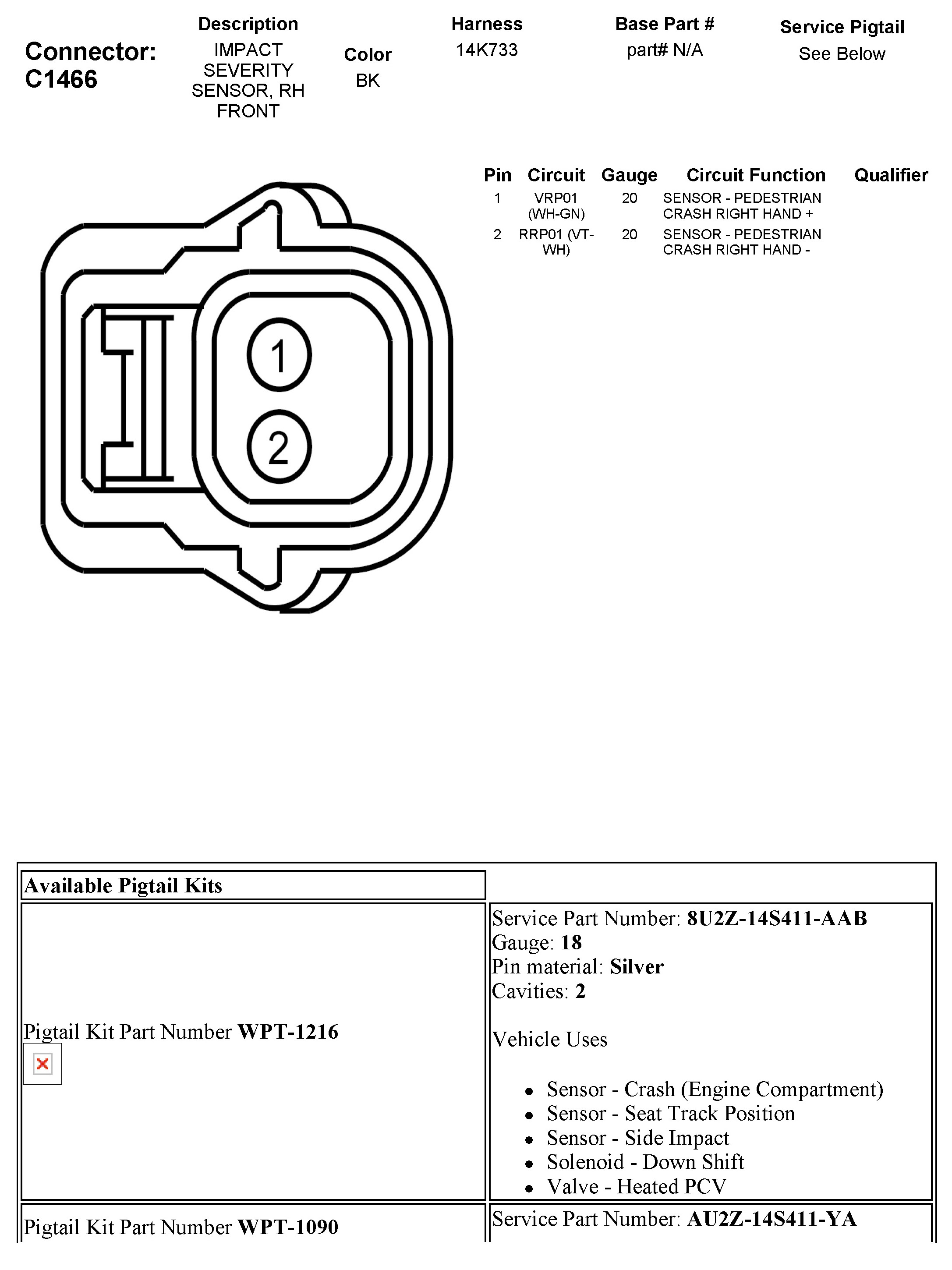 C1466 Impact Severity Sensor, RH Front