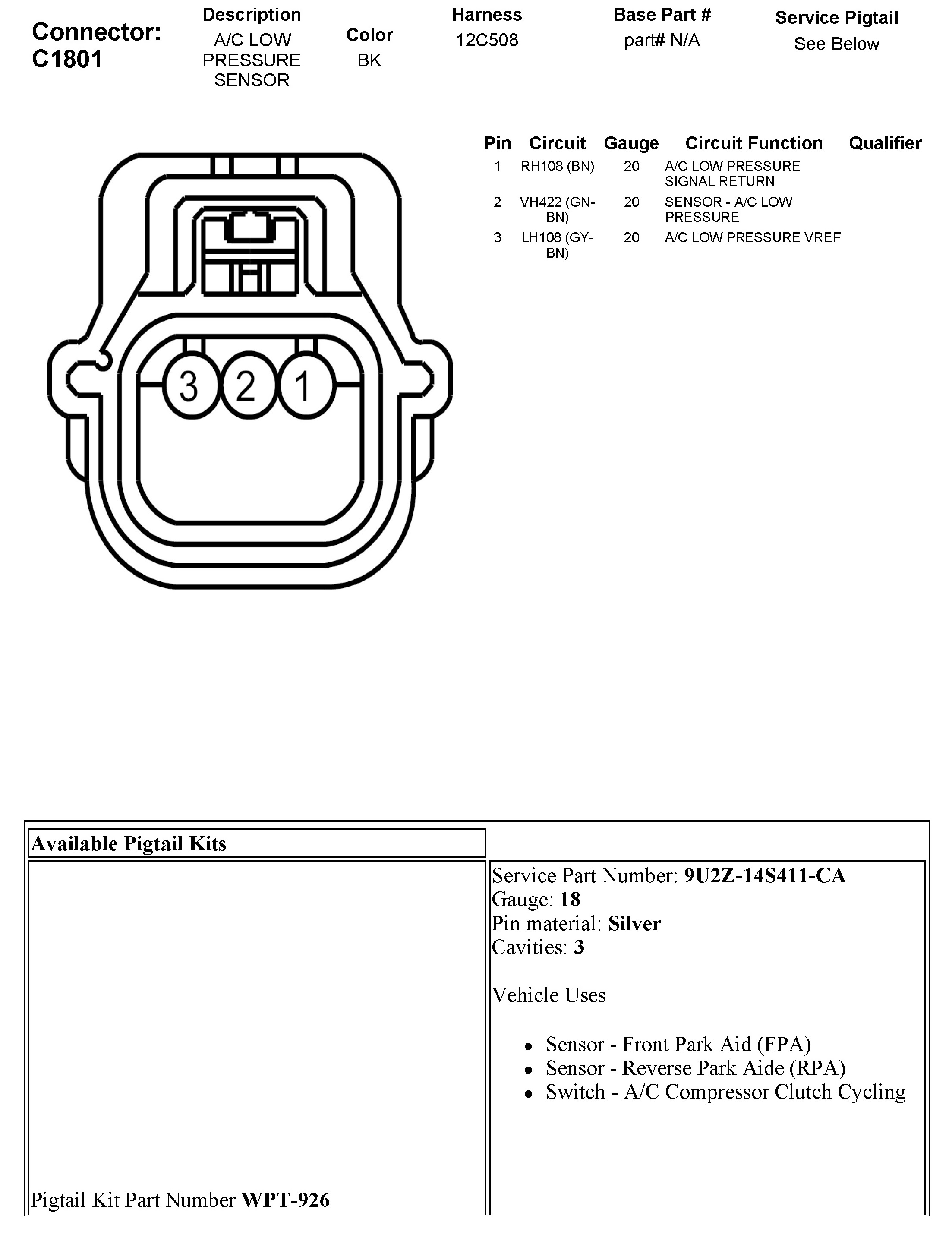 C1801 A/C Low Pressure Sensor