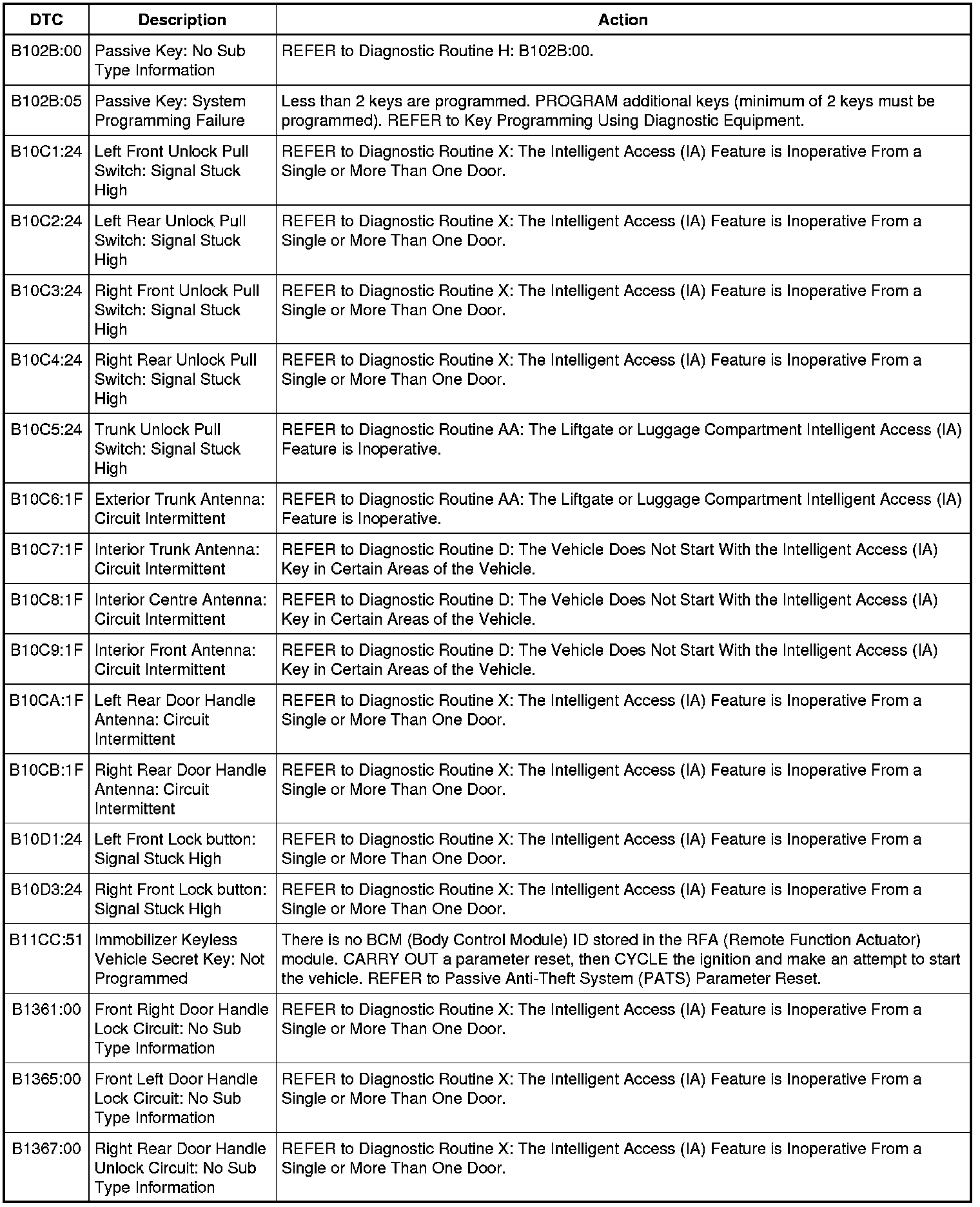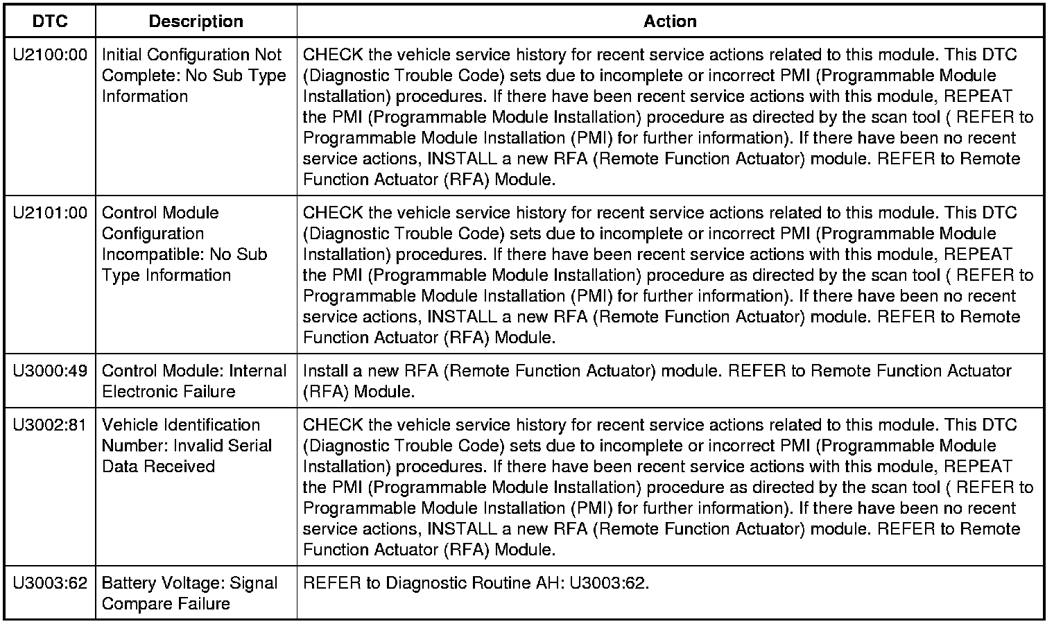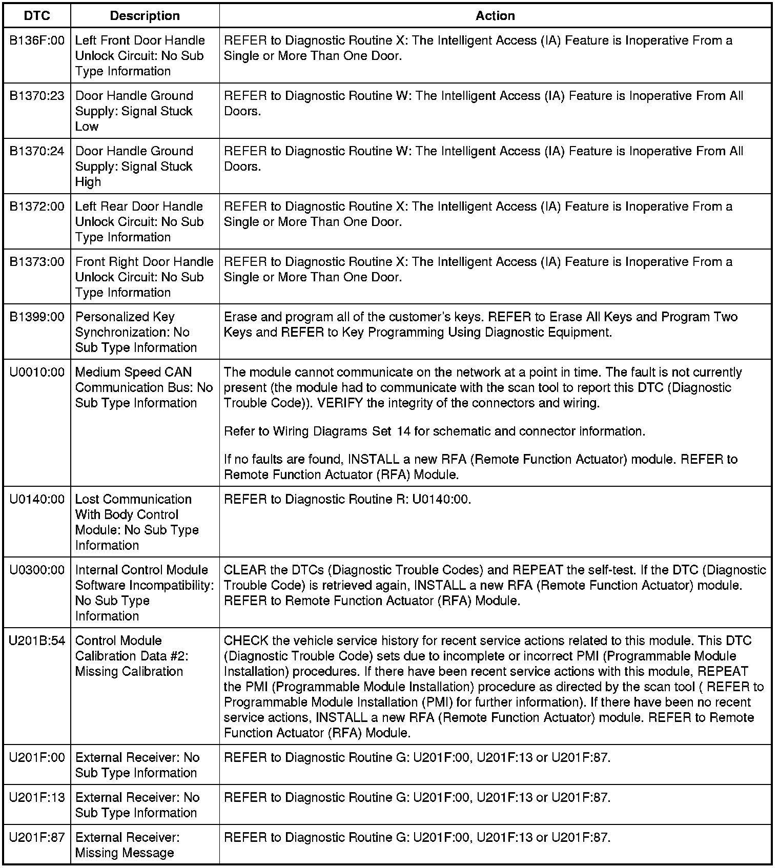 DTC Chart: Remote Function Actuator (RFA)