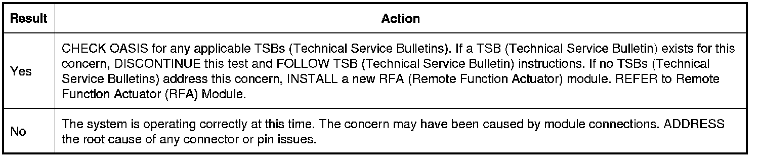 3. CHECK FOR CORRECT RFA (Remote Function Actuator) MODULE OPERATION