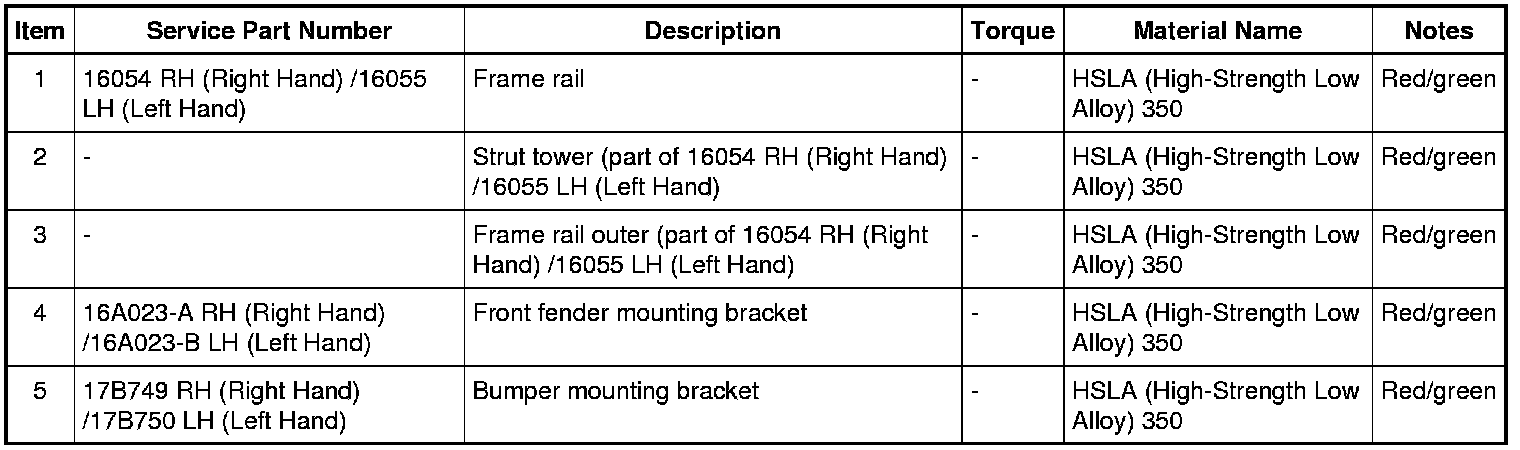 NOTE: See the Ford recommended steel repairability matrix. REFER to General Specifications for correct welding guidelines.