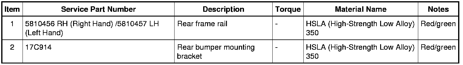 NOTICE: Because of the unique manufacturing and design features in the front and rear frame rails Ford Motor Company does not permit or recognize sectioning of these components. Frame rails must be removed and replaced at the factory seams.