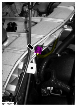 Disconnect the RH (Right Hand) front impact severity sensor electrical connector. REFER to Front Impact Severity Sensor .