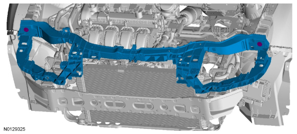 1. Position the radiator grille support on the vehicle and loosely install the upper support bolts.