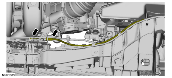 3. Remove the washer reservoir filler and position aside the hoses and wiring.