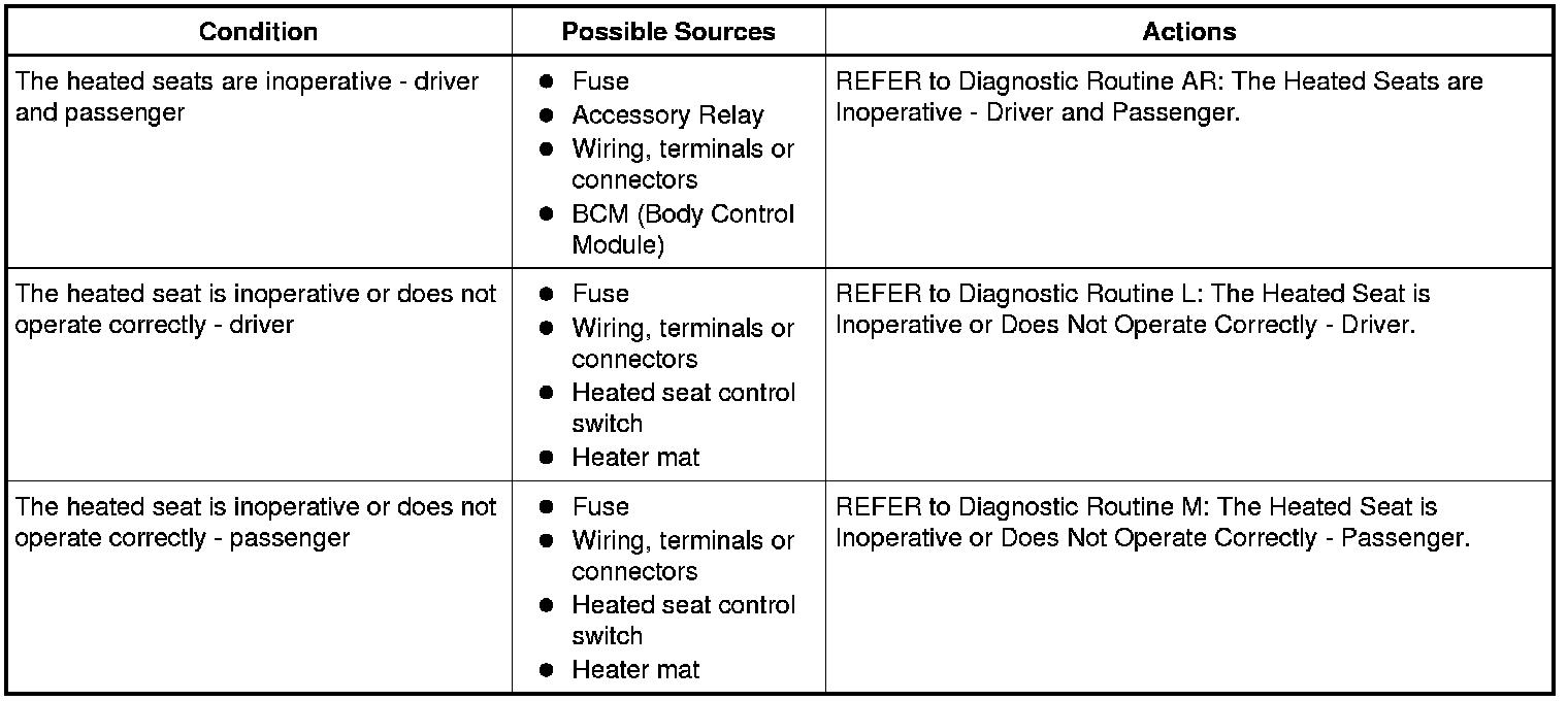 Symptom Chart: Seating - Heated