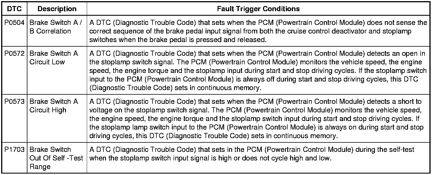 2. Using the table, monitor the PIDs (Parameter Identifications) BOO1 (stoplamp switch) and BOO2 (cruise control deactivator switch) while applying and releasing the brake pedal.